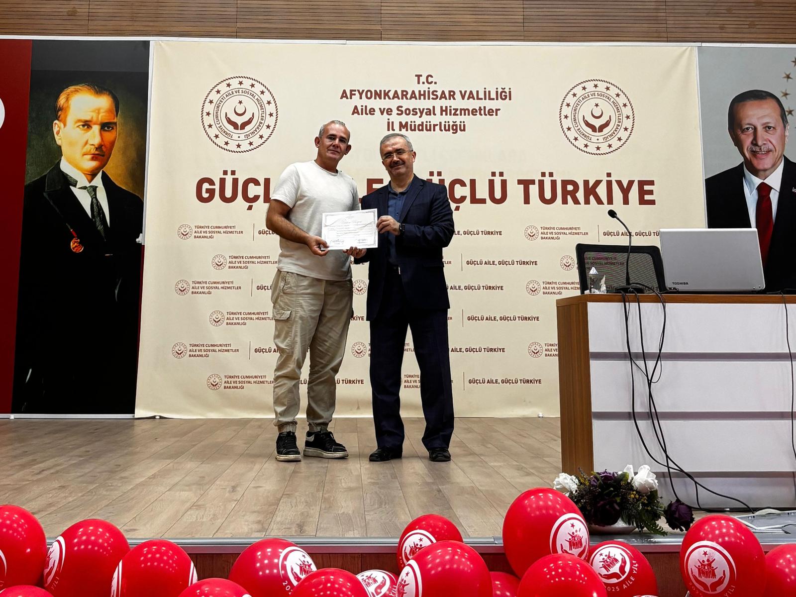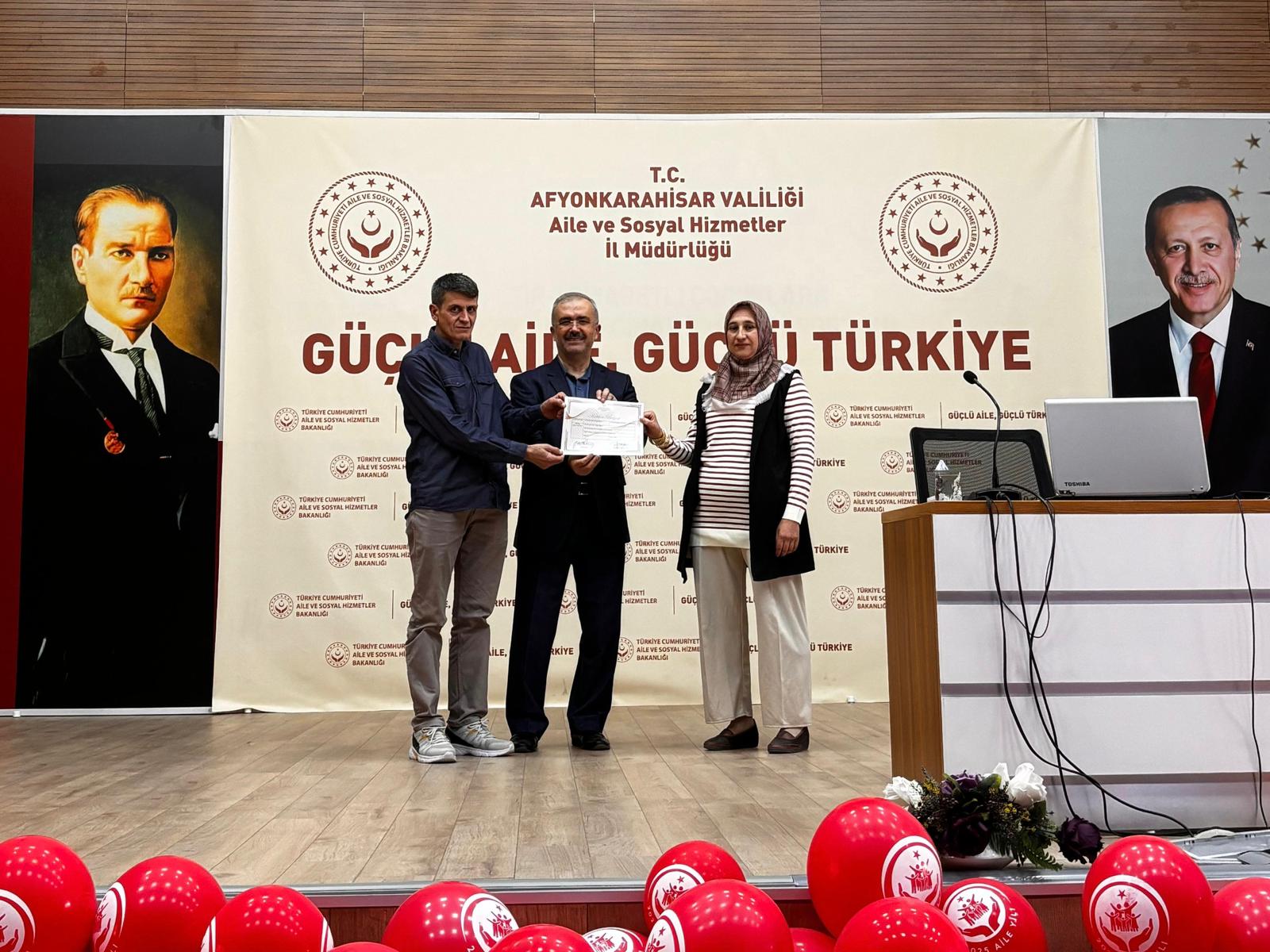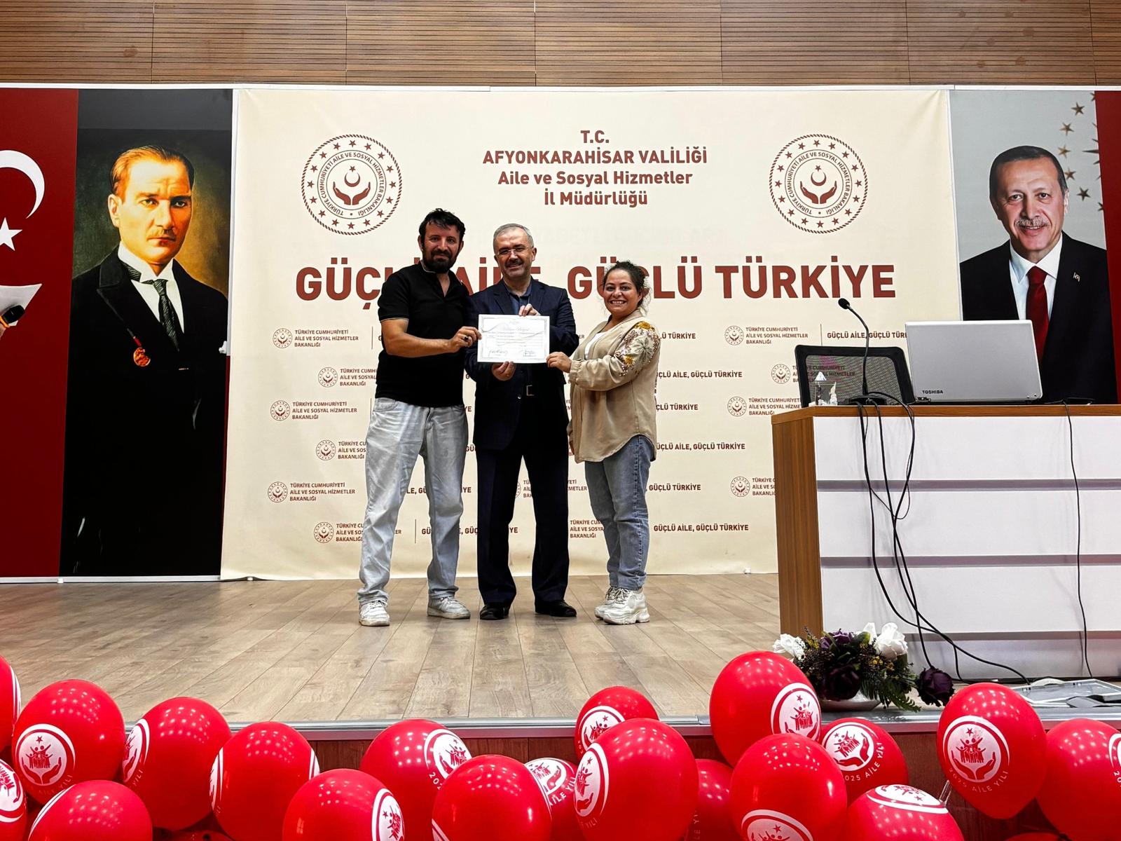 İl Müdürümüz Bilal Erdoğan, eğitime katılan koruyucu ailelerimize katılım belgelerini takdim ederek;