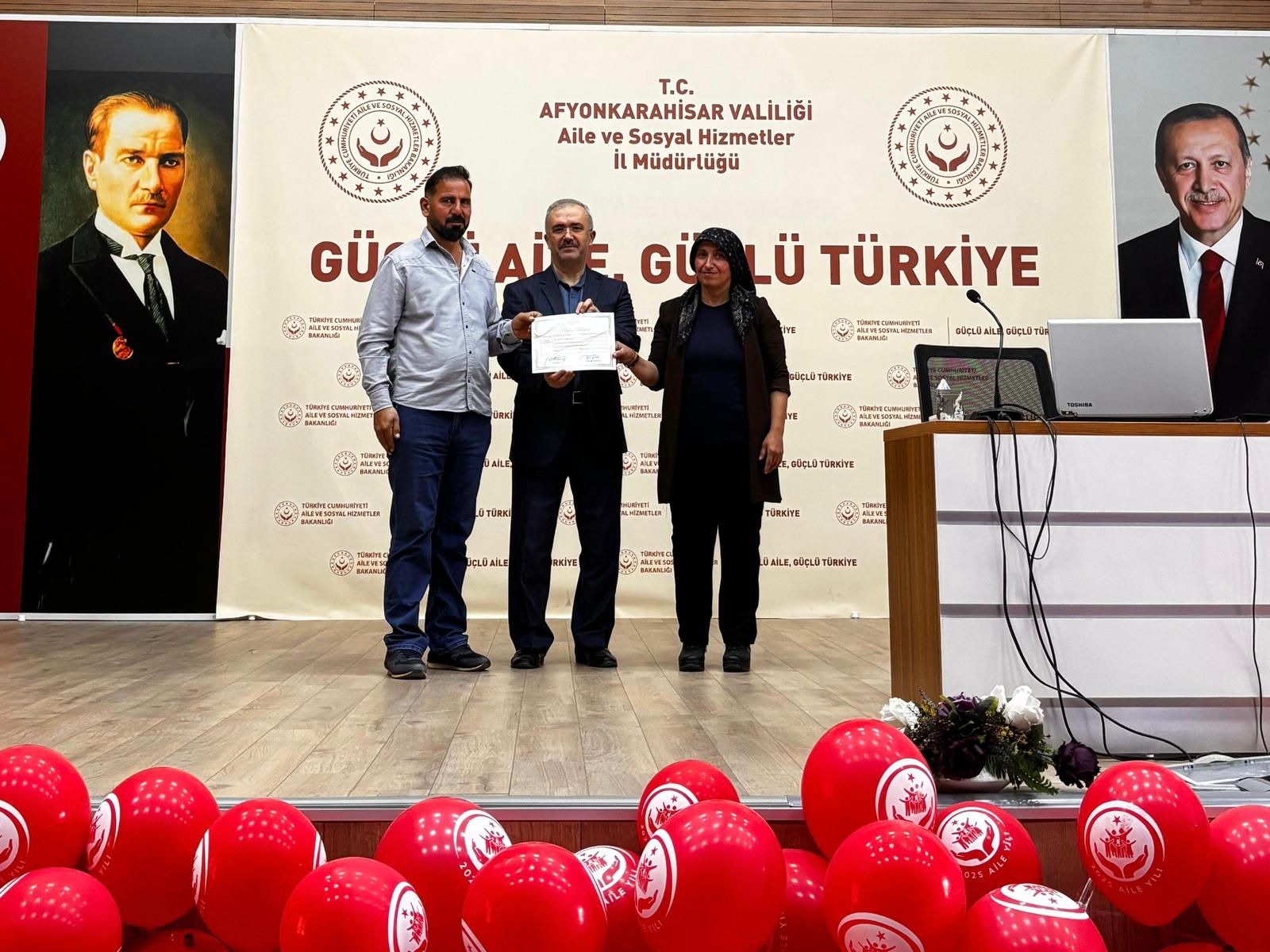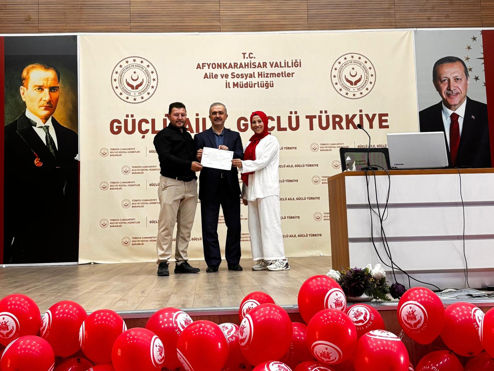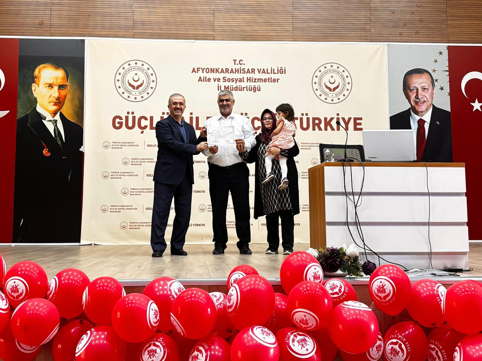 İl Müdürümüz Bilal Erdoğan, eğitime katılan koruyucu ailelerimize katılım belgelerini takdim ederek;