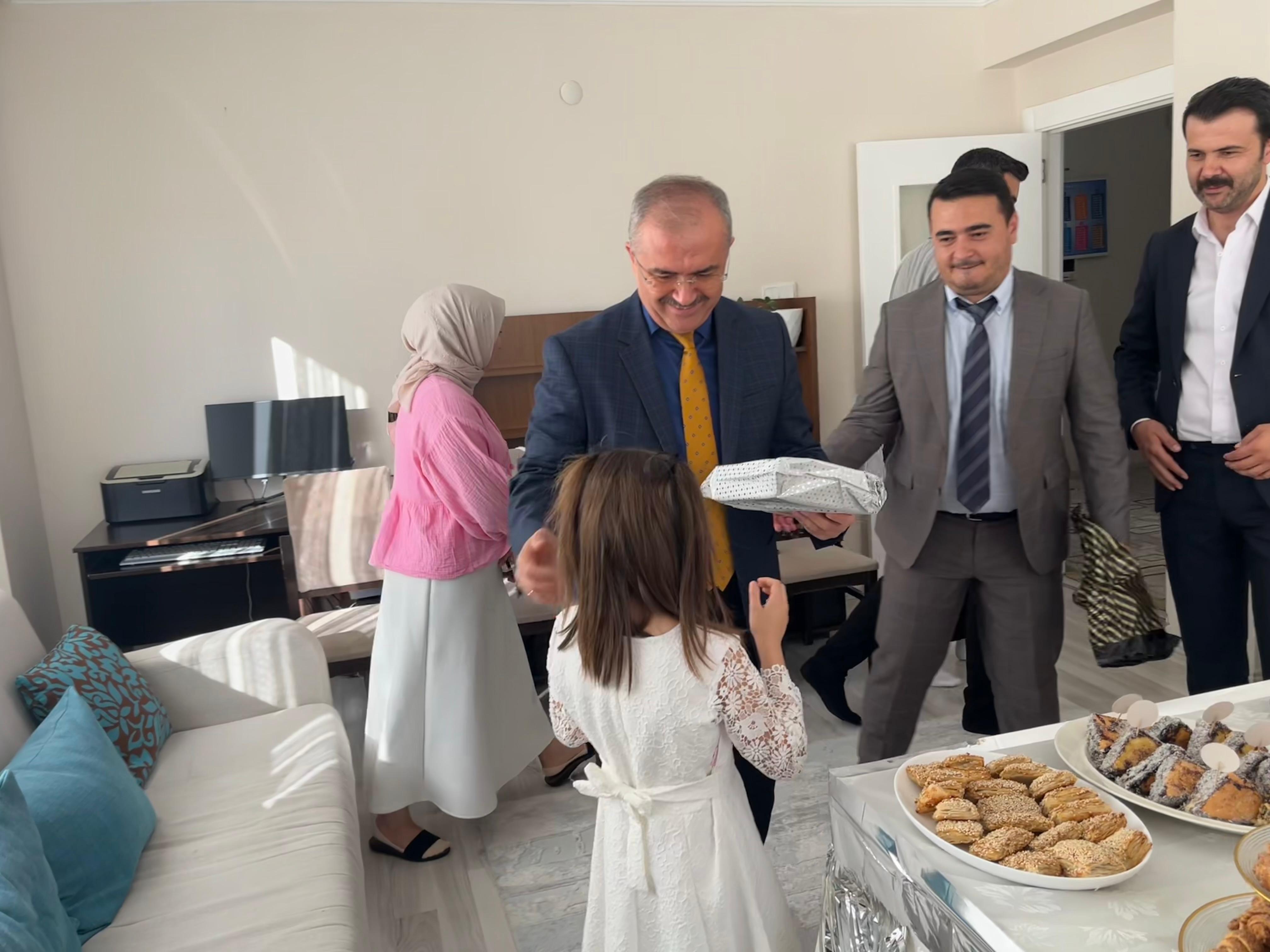 Güneşin üzerinde uyukladığı evlerin çatıları altında, pencereden sokağa bakan yavrularımızın; kaldırımda yürürken ellerinde ekmeklerle evlerine dönen babalar gibi elinde hediyelerle kapılarını çalan İl Müdürümüz Bilal Erdoğan’ı karşılamaları ve yavrumuzun doğum günü sevinci görülmeye değerdi…