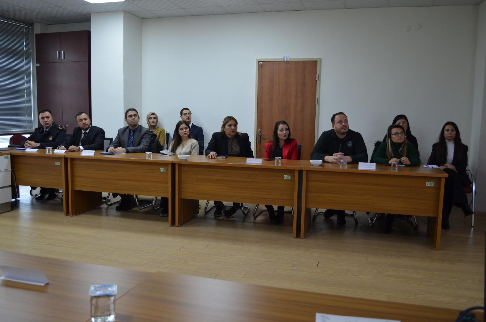 Toplantıda, kadına yönelik şiddet vakalarının ele alınması, uygulamada karşılaşılan sorunların değerlendirilmesi ve kurumlar arası iş birliğinin güçlendirilmesine yönelik görüş alışverişinde bulunuldu.