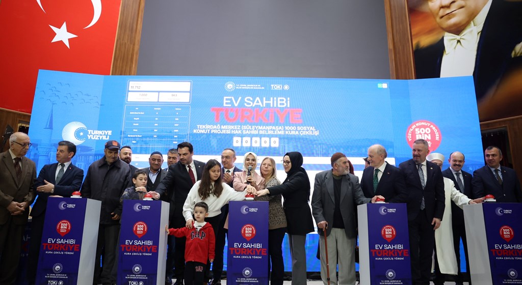 "Bugün Tekirdağ'ımızda 6 bin 865 konutun hak sahiplerini belirleyeceğiz. Yüzyılın Konut Projesi engelli vatandaşlarımız ve şehit yakınlarımız için ayrılan özel kontenjanla hiç kimseyi geride bırakmayan yaklaşımın bir yansımasıdır. Çünkü konut, sadece bir bina değildir. Şehirlerin nitelikli yaşam alanlarına kavuşması, mahallenin huzuru, ailenin birliğidir. Bu anlamda hayata geçirilen her bir sosyal konut projesi 'aile dostu ekosistem' anlayışımızın kıymetli bir parçasıdır."