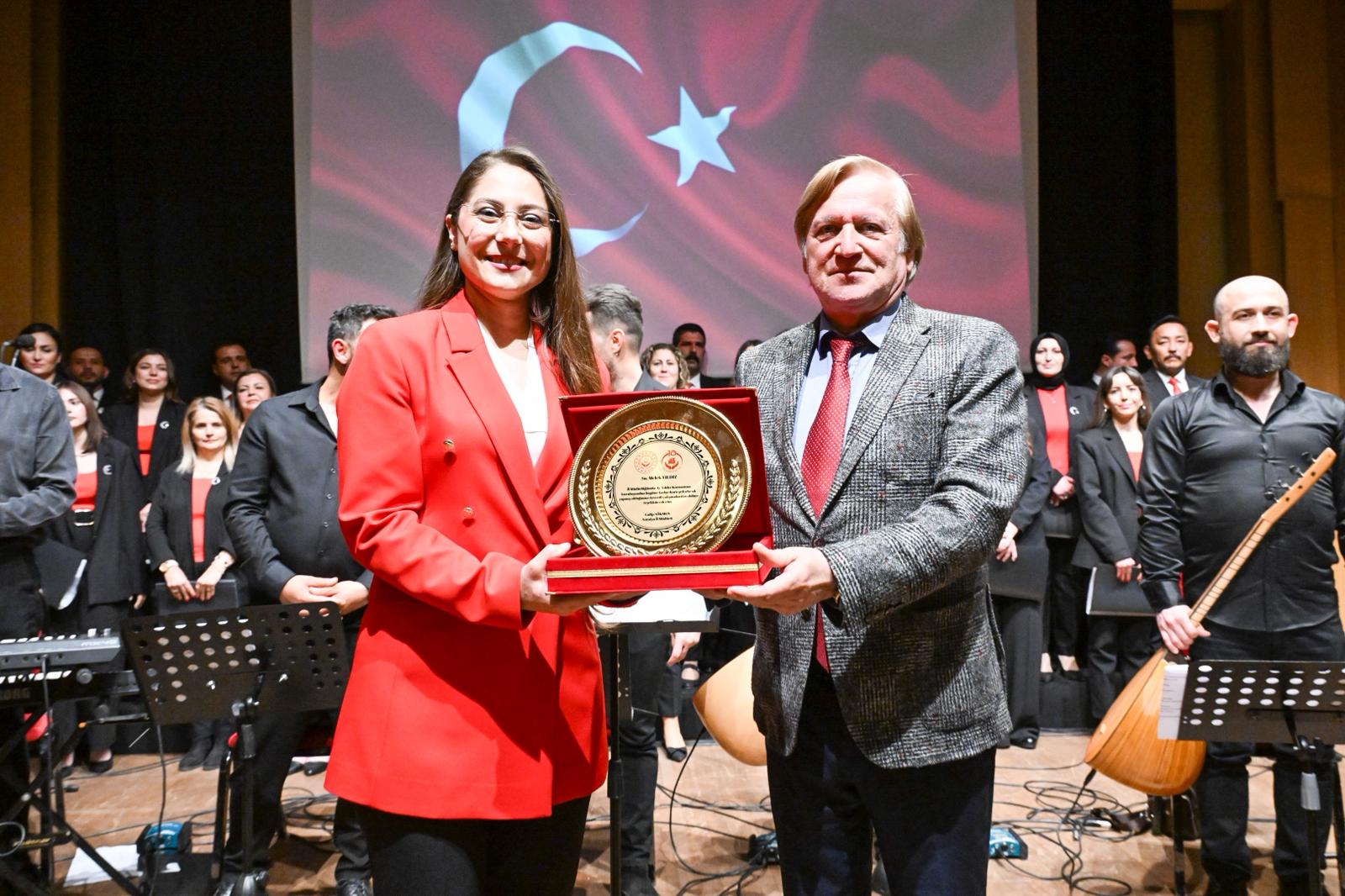 Konser sonrası Vali Vekilimiz Mustafa Hulusi ARAT tarafından programda emeği geçenlere plaket ve çiçek takdimi gerçekleştirildi.