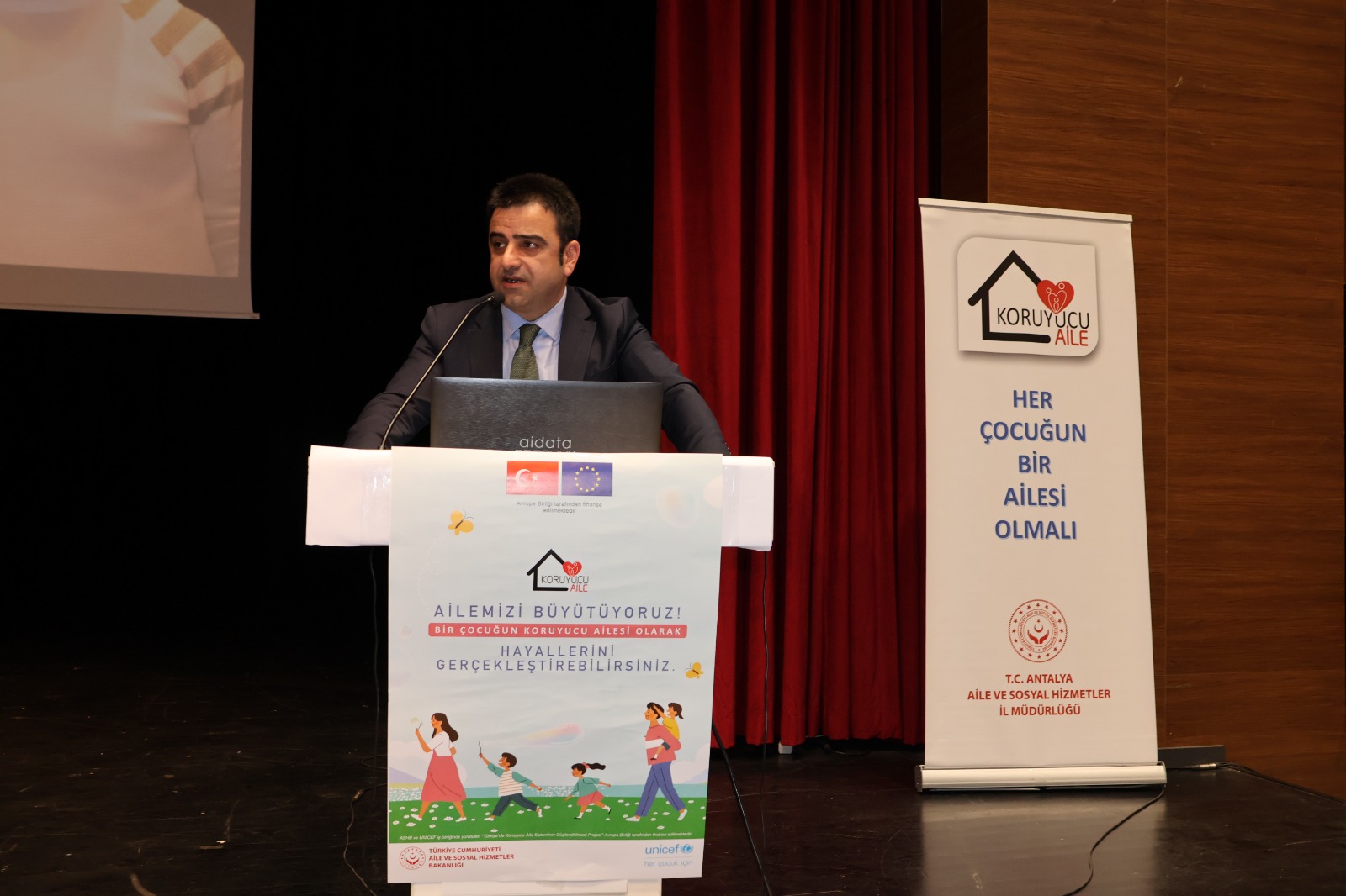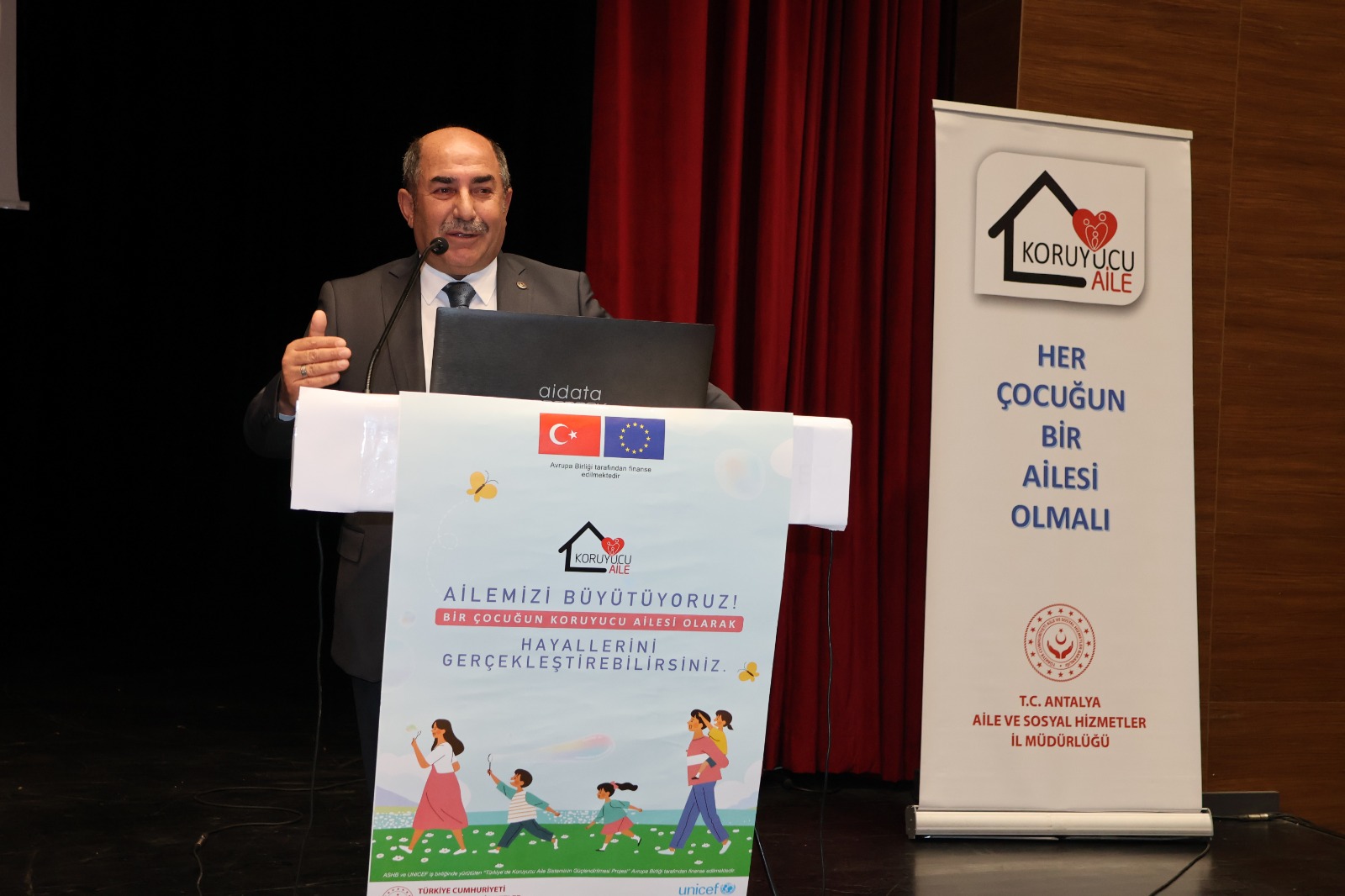 Ardından Konuşmasını yapan Gazipaşa Kaymakamımız Selami Korkutata, konuşmasında;”  Koruyucu aile kurumu devletimizin koordinesinde çok güzel işlemektedir. Aslında koruyucu ailelik millet olarak hiç de yabancı olduğumuz bir kurum değildir. Kültürümüzde olan ve dinimizin de teşvik ve müsaade ettiği bir iyilik faaliyetidir. Tarihimizin her döneminde öksüz ve yetim çocuklarımız öncelikle kendi yakın çevrelerinden ve akrabalarından başlayarak durumu müsait olan aileler tarafından himaye altına alınmış, korunup kollanmıştır. Pırıl pırıl tertemiz bu masum evlatlar bizim çocuklarımız. Bir aile sıcaklığı, anne ve baba şefkati ile büyümek onları ileride topluma yararlı çok güçlü bireyler yapacaktır. Bu vesileyle bugün bu programa göstermiş olduğunuz destek ve katkılarınızdan dolayı teşekkür ederim.” dedi.