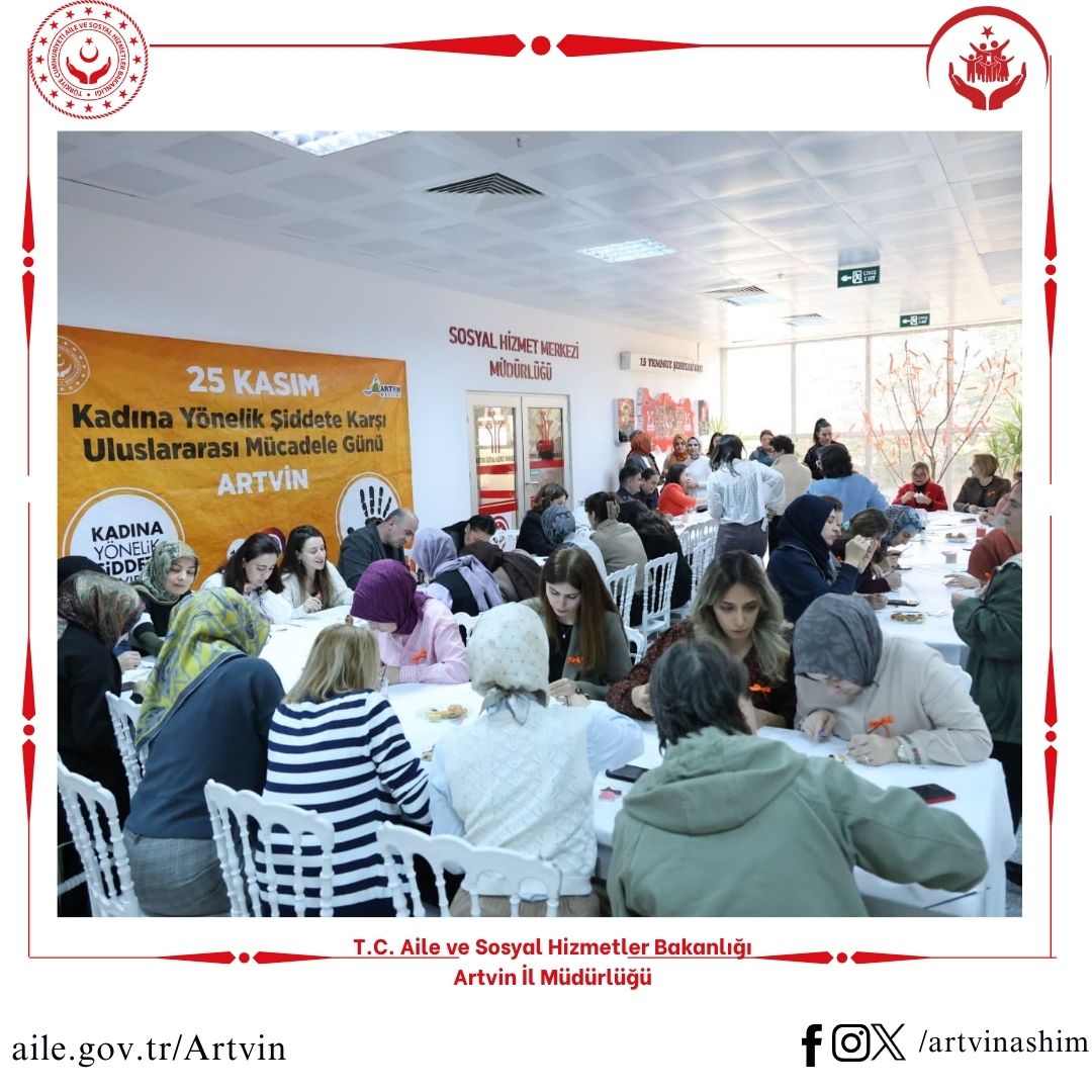25 Kasım Kadına Yönelik Şiddete Karşı Uluslararası Mücadele Günü kapsamında düzenlemiş olduğumuz programa, Valimiz Sayın Dr. Turan Ergün'ün eşi Sayın Hülya Ergün Hanımefendi, İl Müdürümüz Sayın Nevim Öz, il protokolü, kurum personellerimiz ve vatandaşlarımız katılım sağladı. Program kapsamında protokol konuşmaları, kadına yönelik şiddetle mücadele konulu sunum, müzik dinletisi, “Turuncu Ağaç” farkındalık etkinliği ve “Aile Anahtarlığı” temalı seramik atölyesi gibi çeşitli farkındalık çalışmaları gerçekleştirildi.