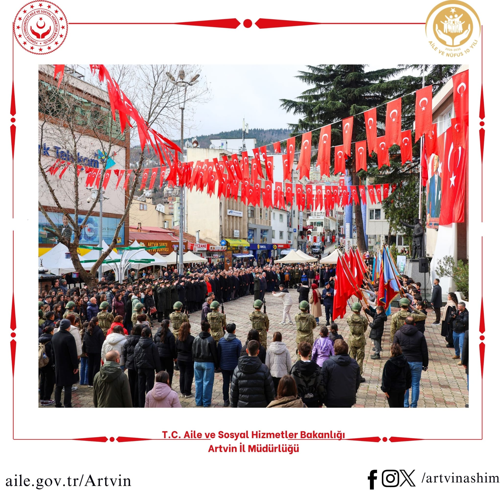 Valimiz Sayın Dr. Turan Ergün ve eşi Hülya Ergün Hanımefendi, il protokolü ve vatandaşlarımızın katılımıyla Milli İrade Meydanı'nda Artvin'in Düşman İşgalinden Kurtuluşunun 105. Yıl Dönümü Kutlama programı düzenlendi. Kutlama programına İl Müdürümüz Sayın Nevim Öz ve kurum personellerimiz de katılım sağladı.