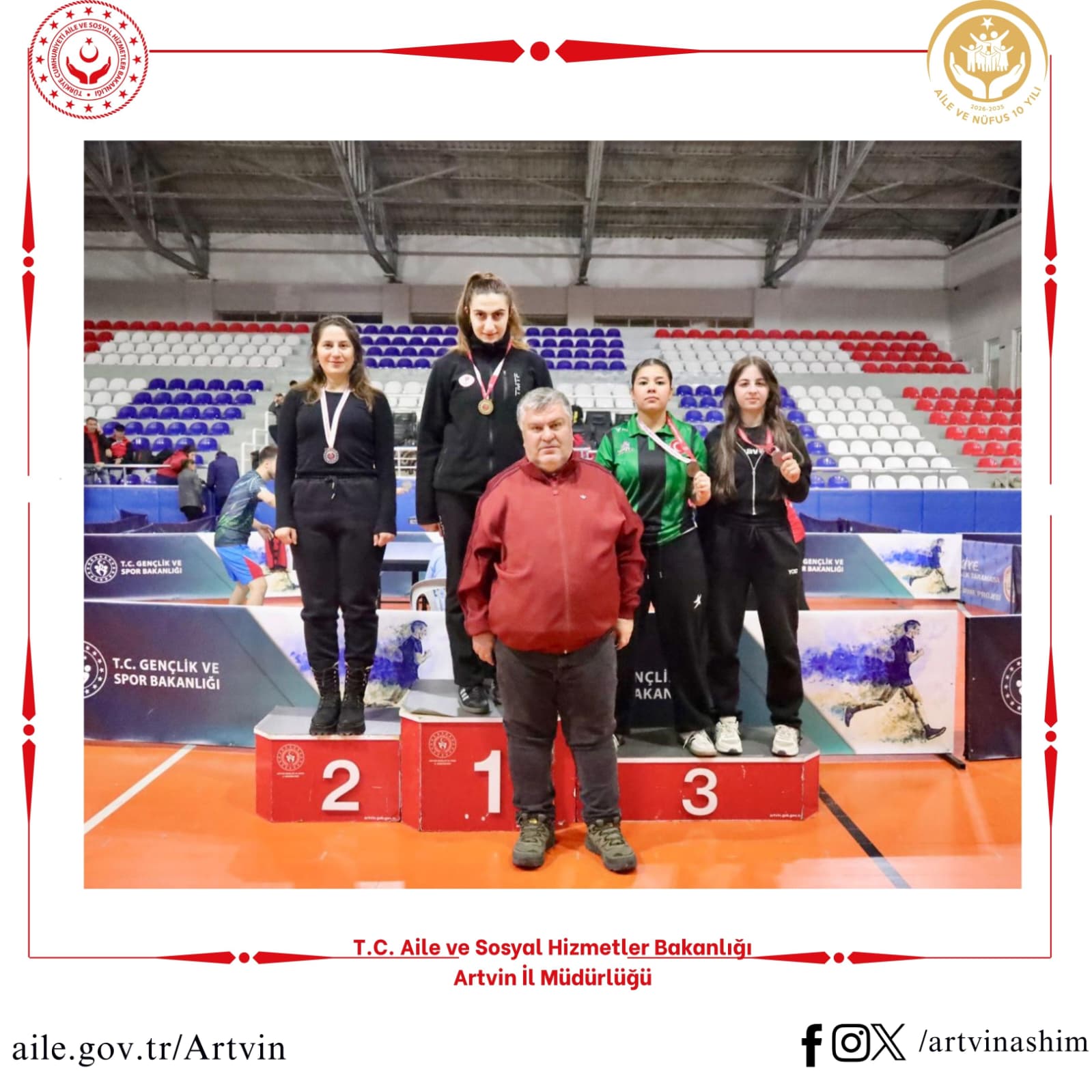 Gençlik ve Spor Bakanlığı koordinesinde, 7 Mart Artvin'imizin Düşman İşgalinden Kurtuluşunun 105. Yılında düzenlenen masa tenisi turnuvasında kurum personelimiz Ayla Çinar Kızlar kategorisinde 2. olarak turnuvayı tamamladı. Personelimizi tebrik ediyoruz.