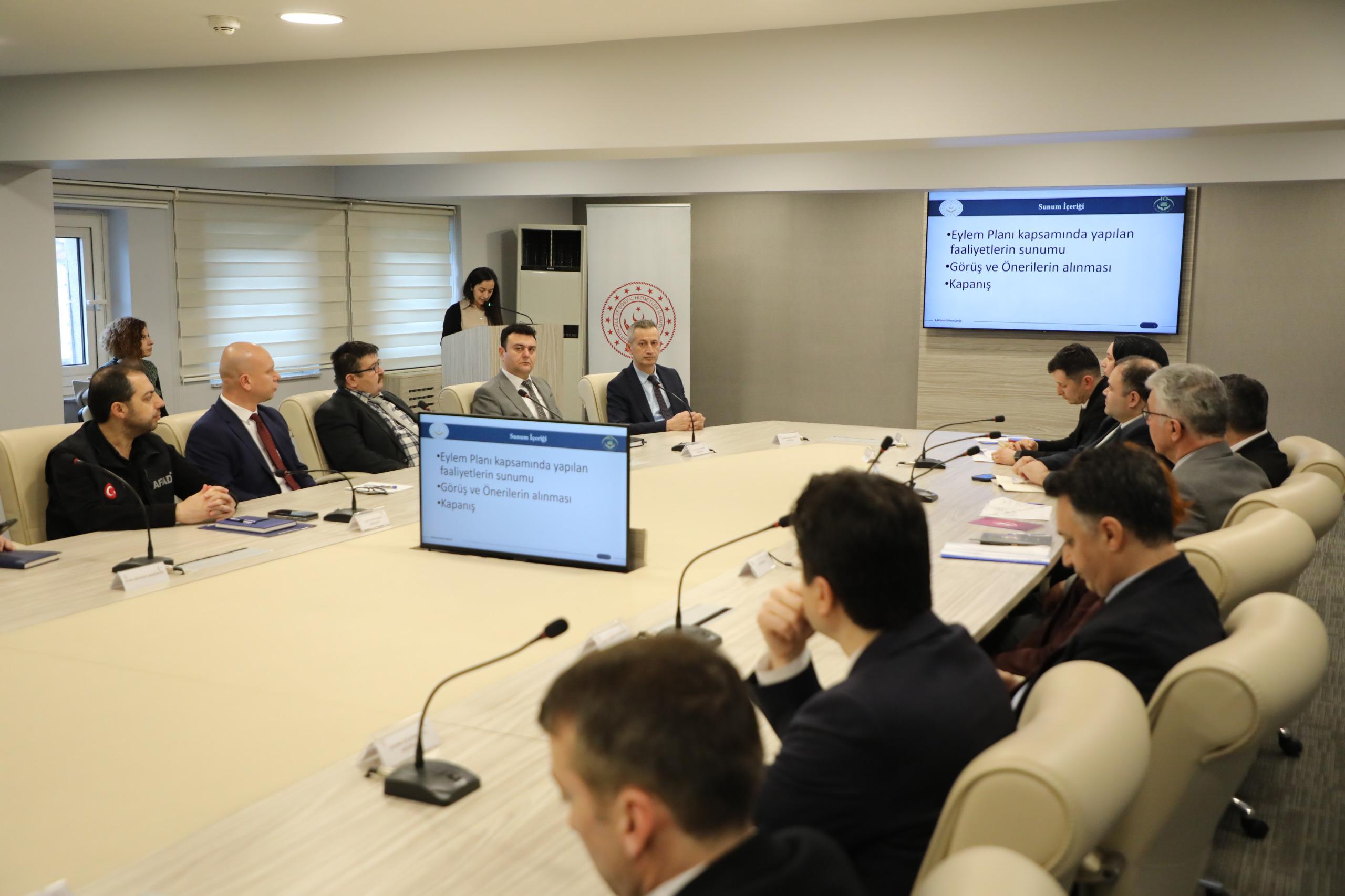 Toplantıda, Müdürlüğümüzde görevli çalışma arkadaşlarımız tarafından 2024/6 sayılı Cumhurbaşkanlığı Genelgesi ile yürürlüğe giren “Ailenin Korunması ve Güçlendirilmesi Vizyon Belgesi ve Eylem Planı (2024–2028)” kapsamında belirlenen, ailenin korunması ve güçlendirilmesine yönelik ulusal stratejiler doğrultusunda yerel düzeyde uygulanacak Ailenin Korunması ve Güçlendirilmesi İl Eylem Planı ve plan kapsamında yürütülecek faaliyetlere ilişkin tanıtım sunumu gerçekleştirildi. Ayrıca 2025 Aile Yılı kapsamında ilimizde gerçekleştirilen faaliyetlere yönelik bilgilendirme yapıldı.