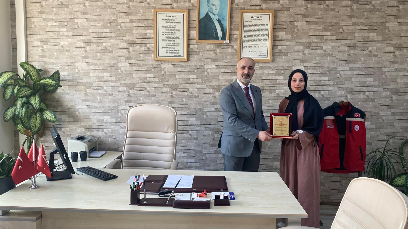 İl Müdürümüz Yavuz Korkmaz, Müdürlüğümüzde görev yapmakta iken görevde yükselme ve unvan değişikliği suretiyle başka illere ataması yapılan çalışma arkadaşlarımıza teşekkür belgelerini takdim etti.