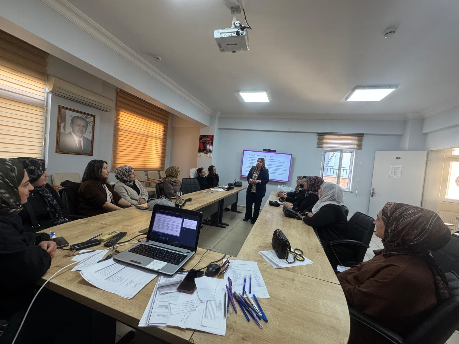 İl Müdürlüğümüze bağlı Batman Sosyal Hizmet Merkezi Müdürlüğü Eğitim ve Danışmanlık Birimi tarafından SED Hizmetinden faydalanan ailelere Modüler Aile Eğitim Programı kapsamında 'Orta ve Geç Çocukluk Döneminden Ergenliğe Gelişim' eğitimi kapalı oturum şeklinde verilmiştir.