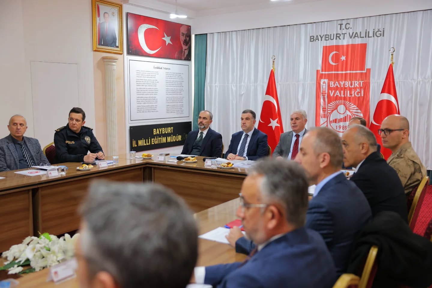 Toplantıya, Bayburt Valisi Mustafa Eldivan, Bayburt Belediye Başkanı Mete Memiş, Bayburt Üniversitesi Rektörü Prof. Dr. Mutlu Türkmen, Vali Yardımcısı, İl Jandarma Komutanı, İl Emniyet Müdürü, ilgili kamu kurum ve kuruluşlarının müdürleri ile sivil toplum kuruluşlarının temsilcileri katıldı.