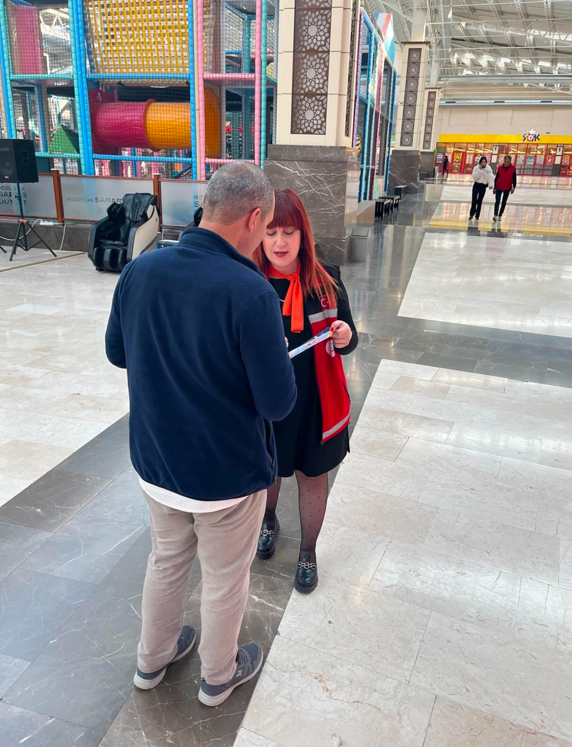 25 Kasım Kadına Yönelik Şiddete Karşı Uluslararası Mücadele Günü kapsamında Bozüyük Sarar AVM'de Müdürlüğümüz tarafından Bozüyük Kaymakamı Sayın Adem ÖZTÜRK'ün de katılımlarıyla vatandaşlarımıza Bakanlığımız Alo 183 İhbar Hattı, KADES uygulaması, 112 Acil Durum Hattı konularında bilgilendirme çalışmaları yapılmıştır.