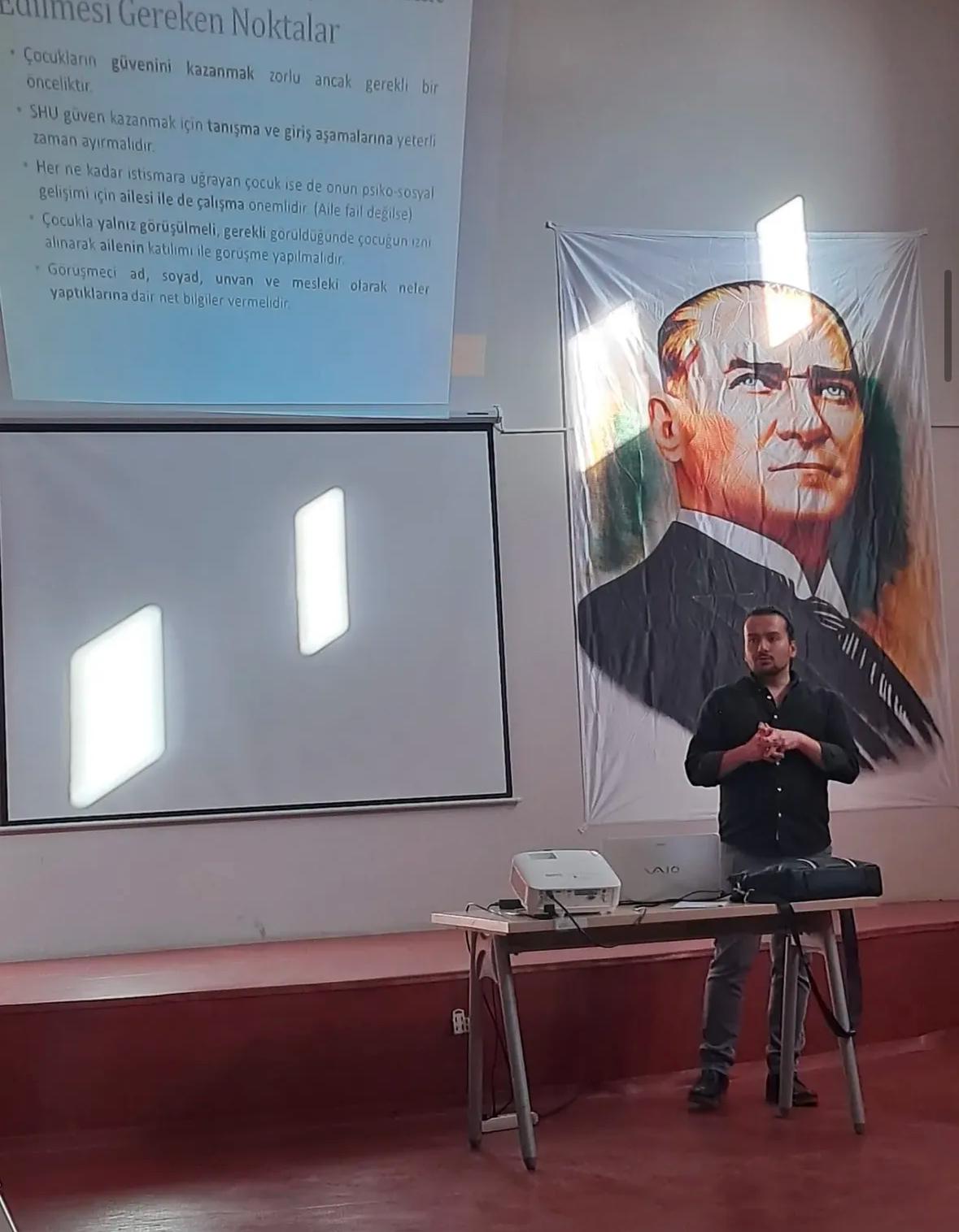 Bilecik Şeyh Edebali Üniversitesi Sosyal Hizmet Bölümünde görevli Arş. Gör. Bahadır DİNÇ tarafından meslek elemanlarına yönelik ''Çocuk Hizmetlerine Yönelik Bireysel ve Grup Görüşme Teknikleri'' konulu eğitim gerçekleştirildi.