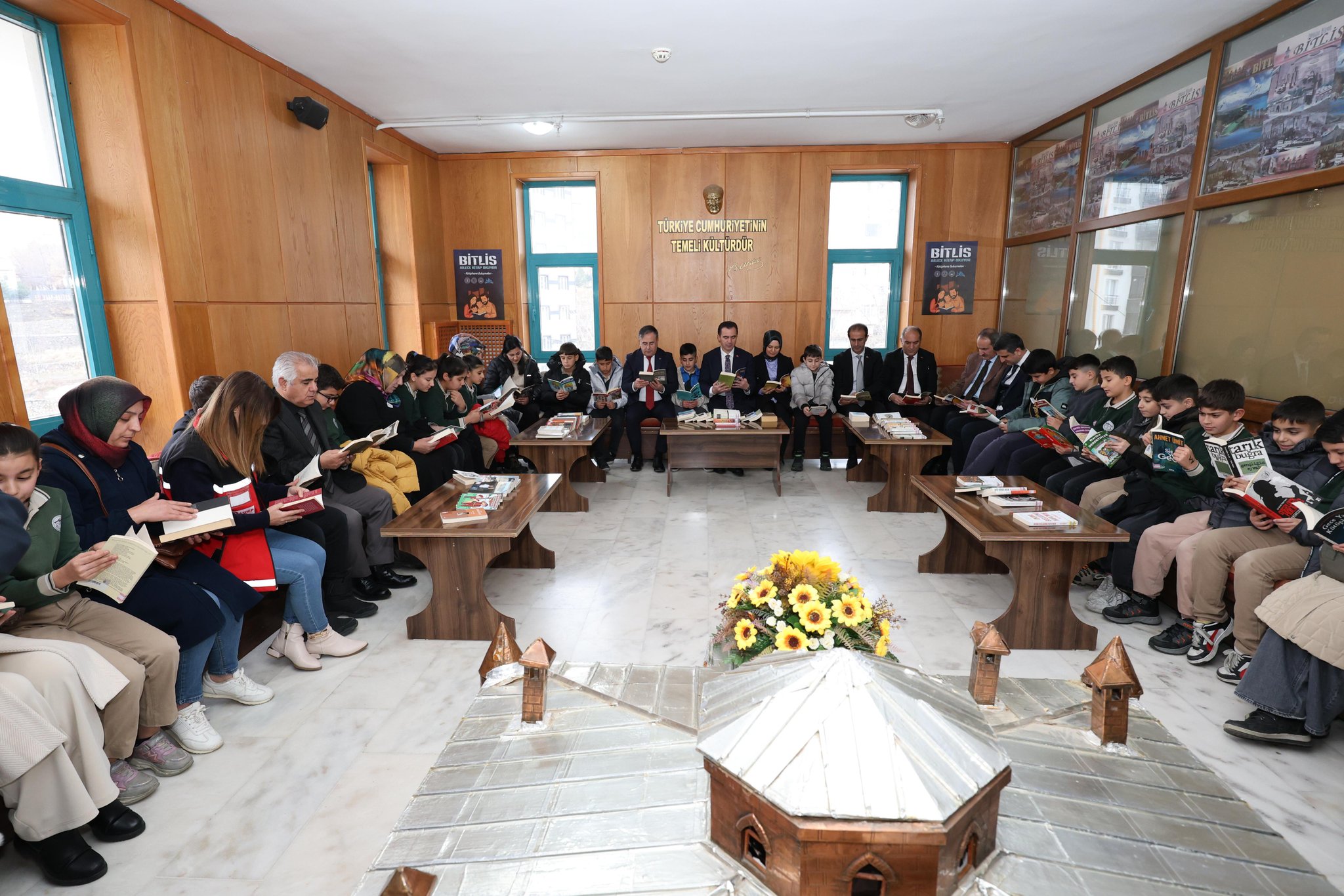 Valimiz Sayın ve eşi Özlem Karakaya Hanımefendi, Valiliğimiz koordinesinde; İl Kültür ve Turizm Müdürlüğü, İl Millî Eğitim Müdürlüğü ile Aile ve Sosyal Hizmetler İl Müdürlüğümüz iş birliğinde yürütülen “Bitlis Ailece Kitap Okuyor” Kütüphane Buluşmaları programına katıldı. Programda aile kurumunun önemine değinen Vali Karakaya, “Bir toplum ancak ailesi kadar güçlüdür.” diyerek çocuklarda ve ailelerde kitap okuma kültürünün güçlendirilmesi gerektiğini vurguladı. “Her gün en az yarım saatimizi kitaplara ayırmaya davet ediyorum.” ifadelerini kullandı. Kütüphane Buluşmaları kapsamında ailelerimizin kütüphanelerde sosyalleşmesi, kaliteli vakit geçirmesi ve çocuklarımızda okuma alışkanlığının geliştirilmesi hedeflenmektedir. Programın hazırlanması, sunum içeriklerinin oluşturulması ve organizasyonun yürütülmesinde İl Müdürlüğümüz personelinin özverili emeği büyük bir katkı sağlamıştır. Katılımcılara sunulan içerikler, Müdürlüğümüz personeli tarafından titizlikle hazırlanmış; sinevizyon gösterimi ve müzik dinletileri de eklenerek program zenginleştirilmiştir. Sayın Valimiz, etkinliğin sonunda öğrencilerimiz ve ailelerimizle birlikte bir süre kitap okuyarak programa destek vermiştir. Programa; İl Kültür ve Turizm Müdürü Sayın Osman Fadıl Üner, İl Millî Eğitim Müdürü Sayın Vedat Kaya, Aile ve Sosyal Hizmetler İl Müdürümüz Vefa Akdoğan, kurum müdürleri, öğretmenlerimiz, öğrencilerimiz, aileleri ve vatandaşlarımız katılım sağlamıştır.