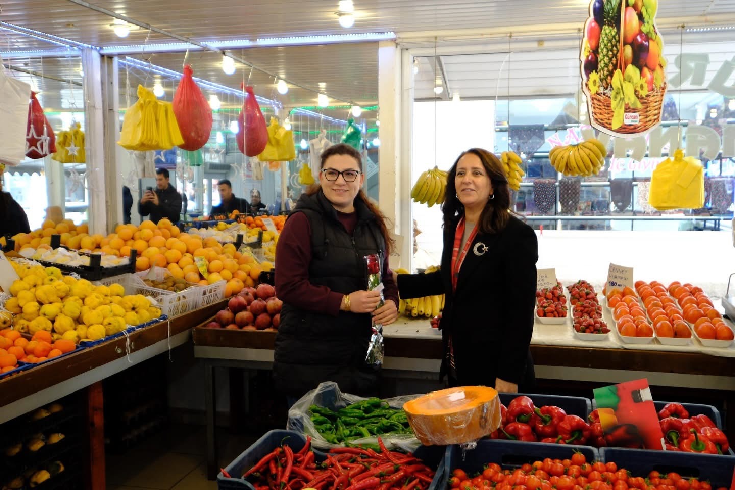 Kadın esnaflarımıza çiçek vererek 8 Mart Dünya Kadınlar Günü’nü kutlayan Sayın Valimiz, emekleriyle üretime ve ticarete katkı sunan tüm kadınlara teşekkür ederek hayırlı ve bereketli kazançlar diledi.