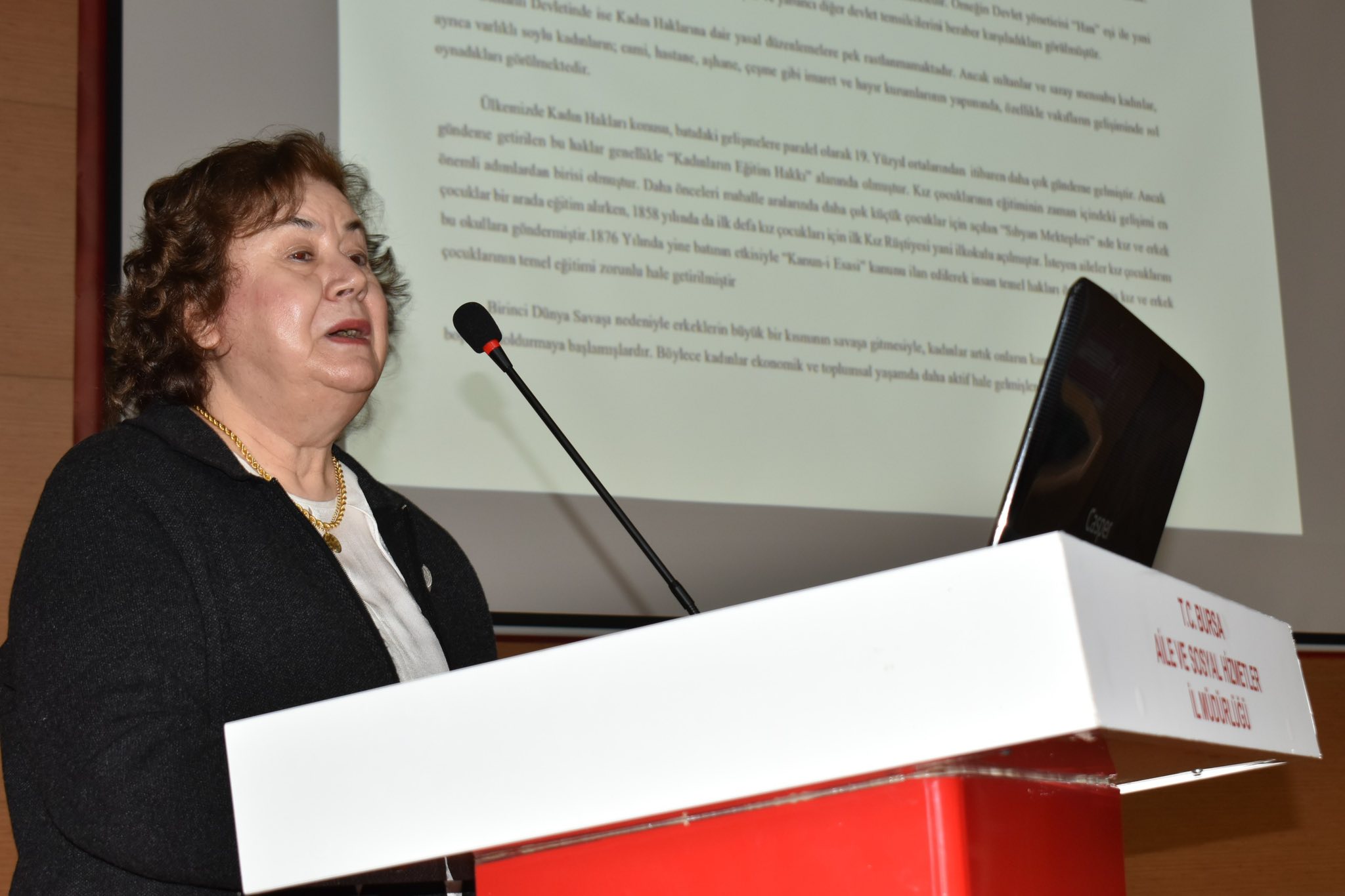 Söyleşinin devamında Prof. Dr. Handan Asude Başal tarafından Türkiye’de kadın haklarının tarihsel gelişimi, kazanımları ve günümüze yansımaları ele alınarak katılımcılara sunuldu.