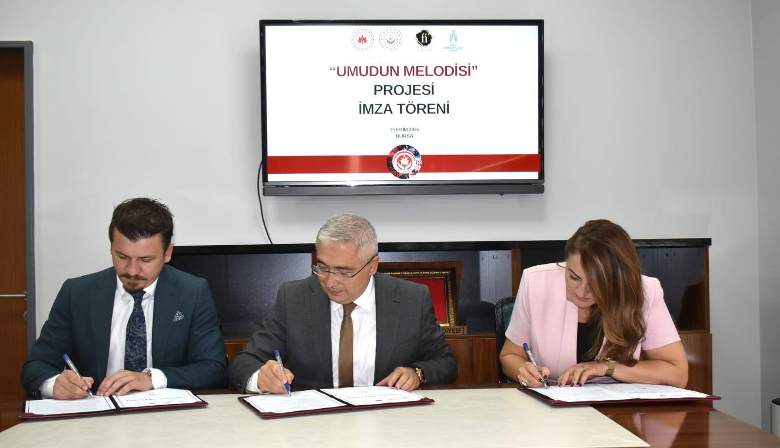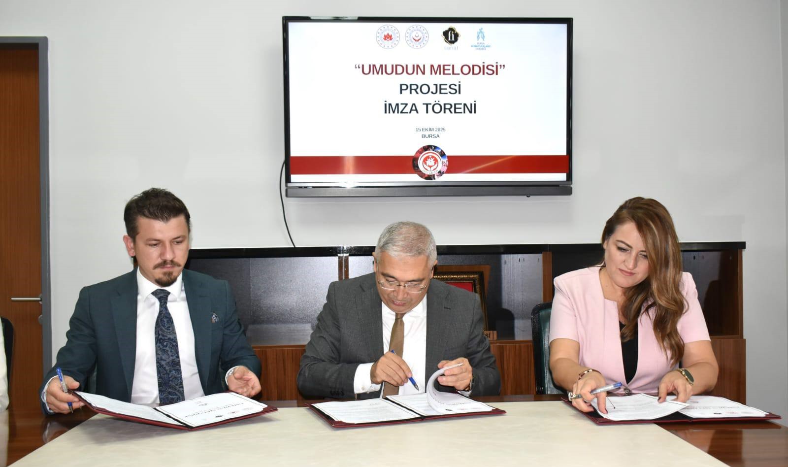 İl Müdürlüğümüz, Fi Sanat ve Bursa Koruyucu Aile Derneği iş birliğiyle, 6-12 yaş aralığındaki çocuklarımızn müzik aracılığıyla özgüven, empati, sosyal uyum, iletişim, takım çalışması ve öz disiplin becerilerinin geliştirilmesini amaçlayan “Umudun Melodisi – Müzikle Umudu Yeşerten Çocuklar” projesinin imza töreni düzenlendi.
