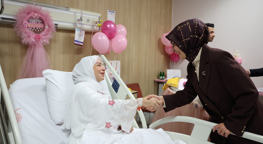 Bakan Göktaş ve Bakan Yumaklı ilk olarak üçüncü bebekleri dünyaya gelen Meryem-Yasin çiftinin bebekleri Asel’i ziyaret ederek, sağlıkla büyümesi temennisinde bulundu.