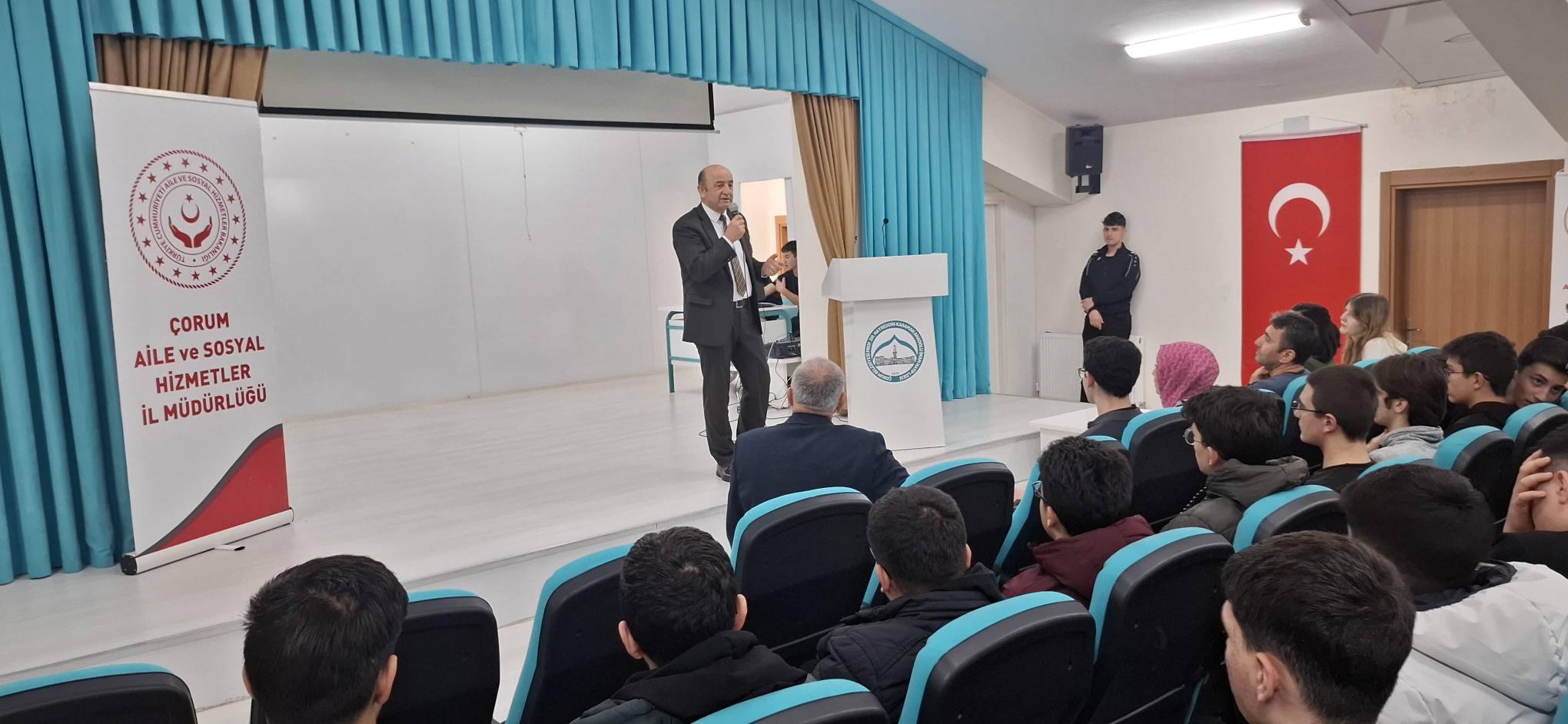 Çorum Çocuk Hakları İl Komitesi olarak, Hayrettin Karaman Erkek Anadolu İmam Hatip Lisesi’nde Çorum Çocuk Hakları Kız Temsilcimiz Zeynep Nisa ALDEMİR ve Çorum Çocuk Hakları Erkek Temsilcimiz Kayra AKGÜL tarafından “Akrandan Akrana Eğitim” kapsamında İl Müdür Yardımcımız İsmail YILMAZ’ında katılımı ile bir bilgilendirme sunumu gerçekleştirildi.