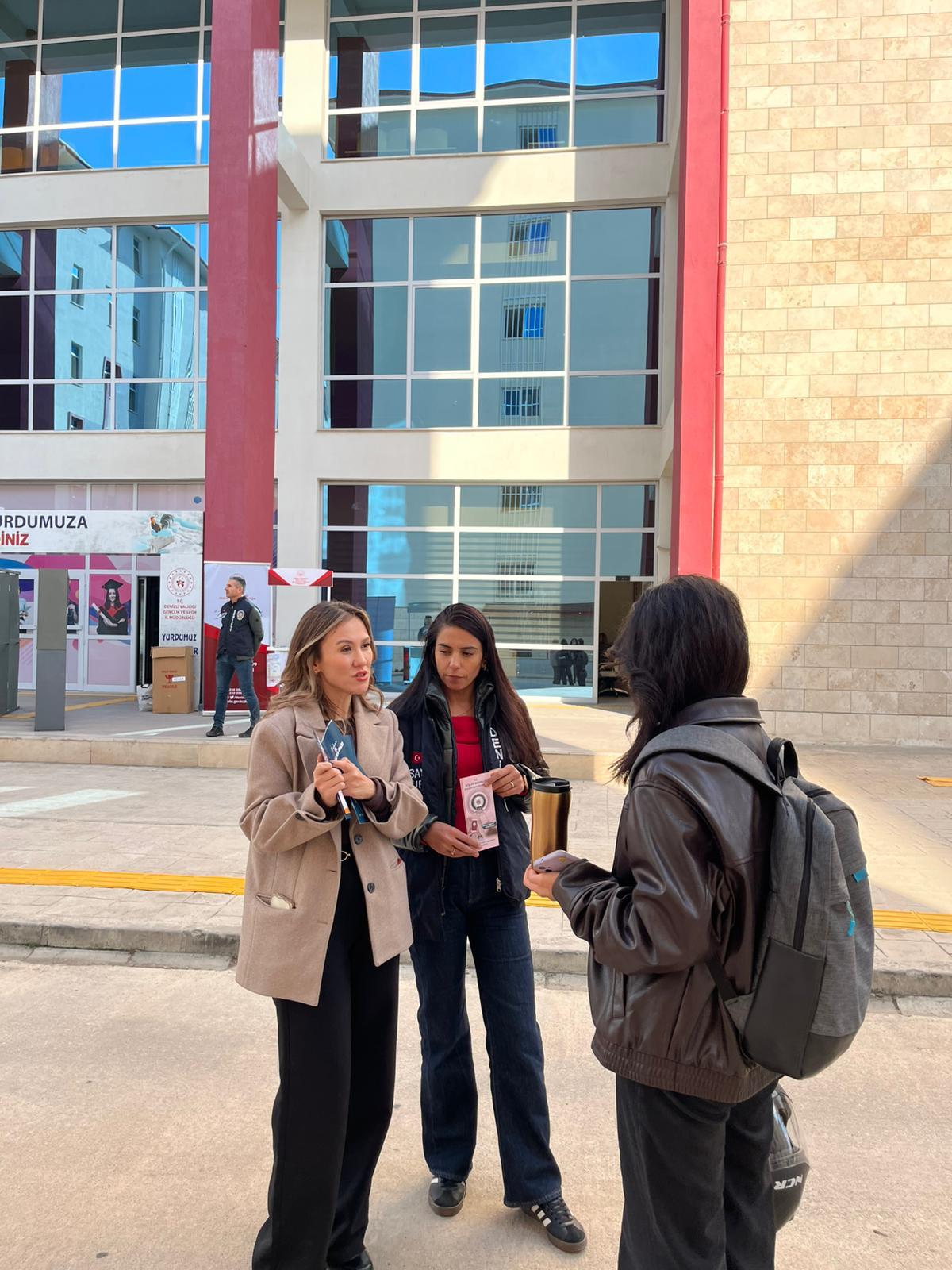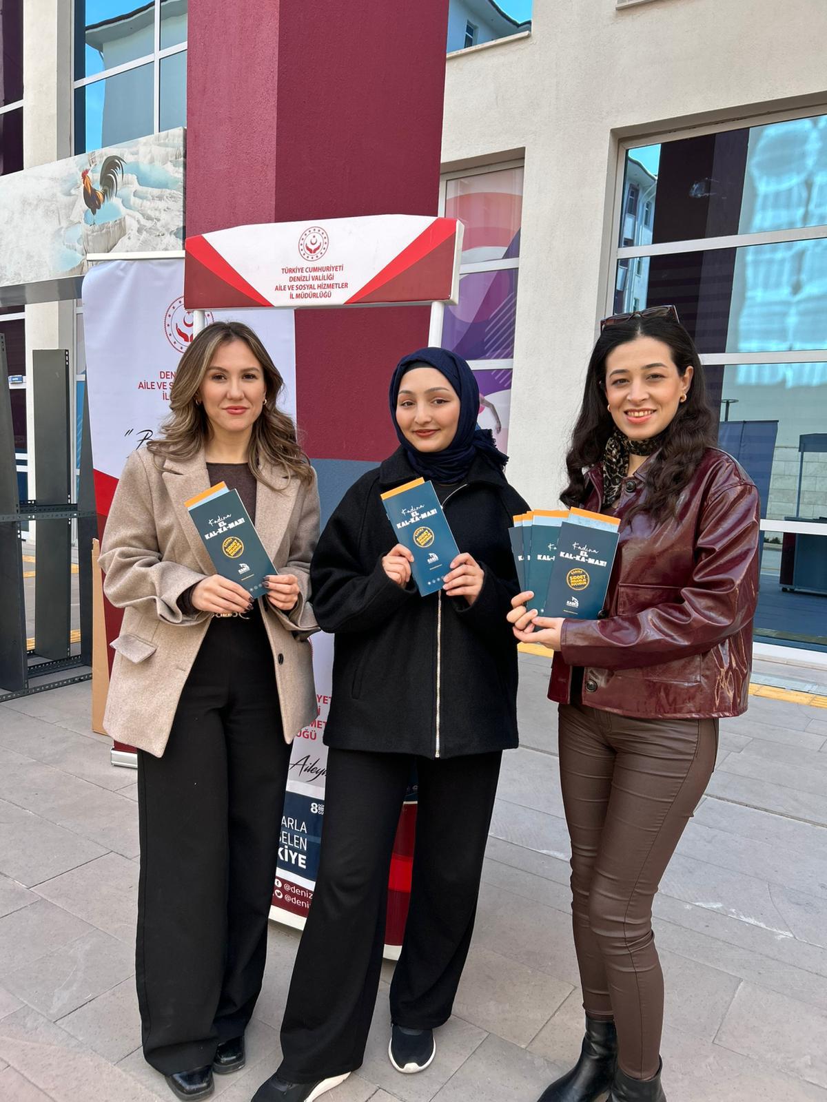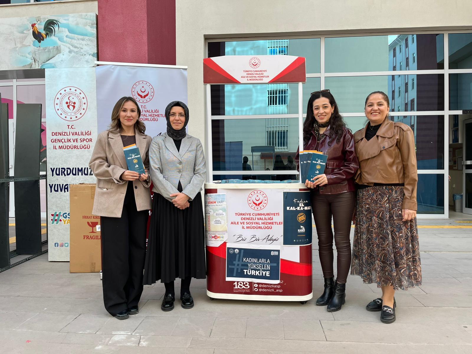 Aile ve Sosyal Hizmetler İl Müdürlüğüne bağlı Şiddet Önleme ve İzleme Merkezi Müdürlüğü(ŞÖNİM) personelleri tarafından, Pamukkale Üniversitesinde öğrenim gören Kredi Yurtlar Kurumunda kalan kadın öğrencilere; 25 Kasım Kadına Yönelik Şiddete Karşı Uluslararası Mücadele Günü etkinlikleri çerçevesinde ‘İşaretifarket’ sloganı ile Kadına Yönelik Şiddetle Mücadele konusunda farkındalık oluşturmak amacıyla kurduğumuz stantı ziyaret eden kadın öğrencilere; 6284 Sayılı Ailenin Korunması ve Kadına Karşı Şiddetin Önlenmesine Dair Kanun, Alo 183 Hattı, KADES Uygulaması hakkında tanıtım yapılarak hazırlanan broşürler dağıtılmıştır.