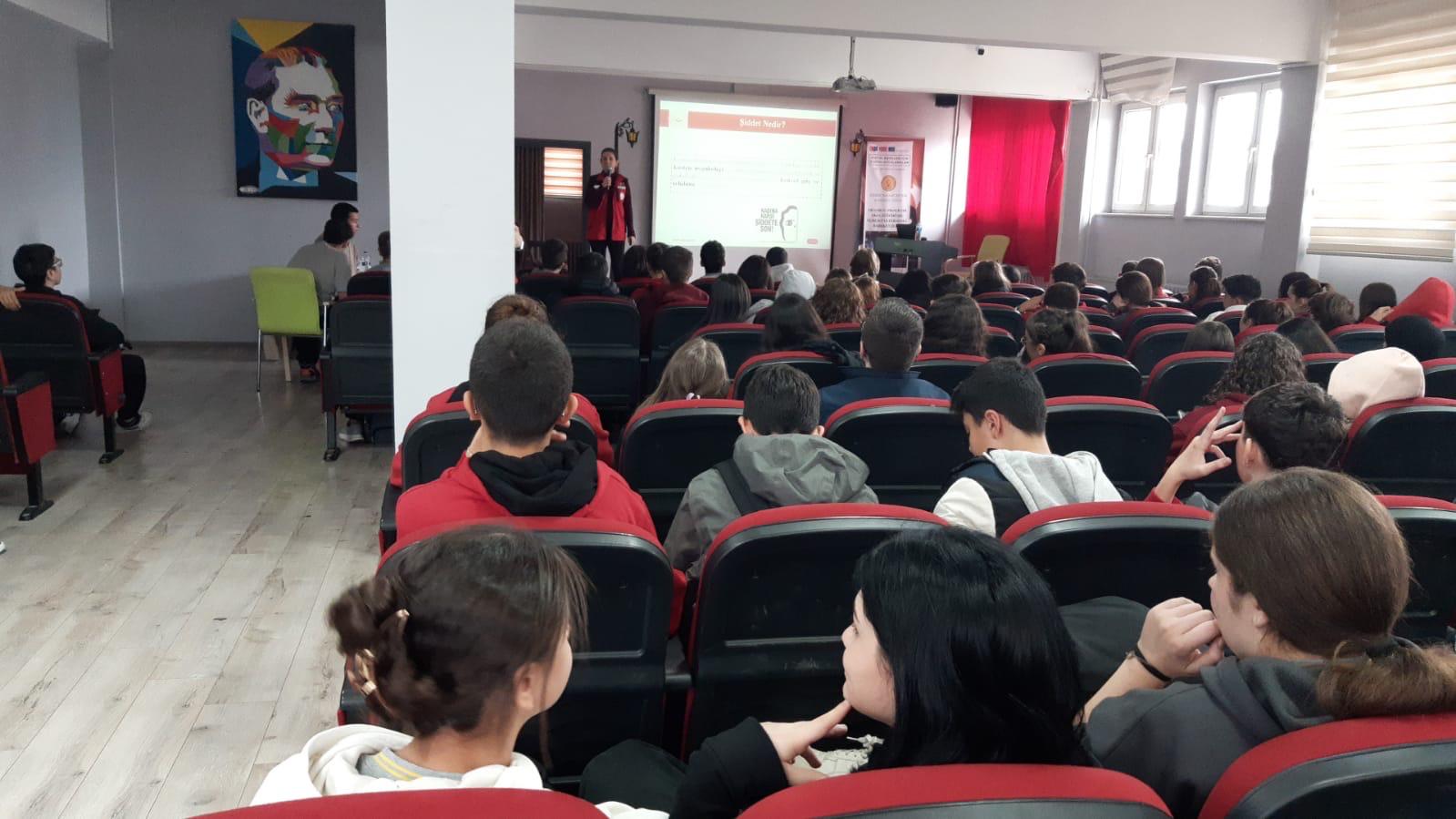 Edirne Aile ve Sosyal Hizmetler İl Müdürlüğüne bağlı Şiddet Önleme ve İzleme Merkezi Müdürlüğünce İlhami Ertem Anadolu Lisesi öğrencilerine Kadına Yönelik Şiddetle Mücadele eğitimi verildi.