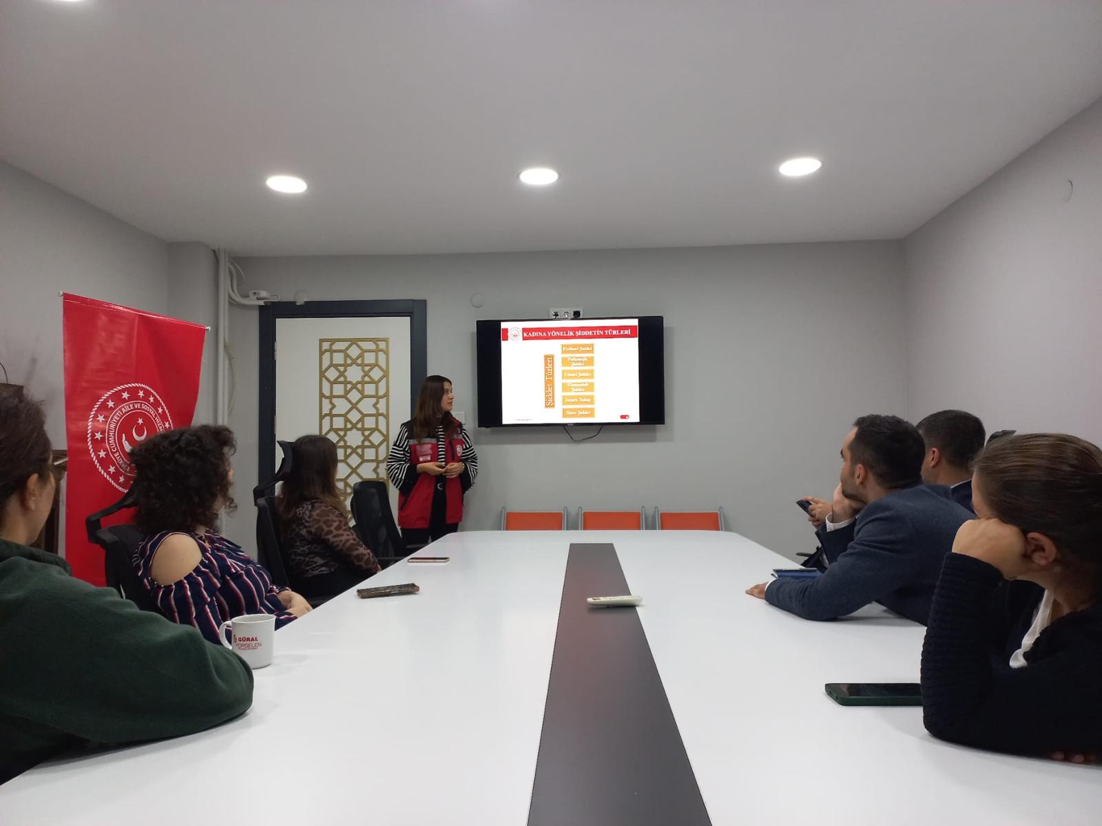 Edirne Aile ve Sosyal Hizmetler İl Müdürlüğüne bağlı Şiddet Önleme ve İzleme Merkezi Müdürlüğünce Edirne İl Nüfus ve Vatandaşlık Müdürlüğü personeline Kadına Yönelik Şiddetle Mücadele eğitimi verildi.