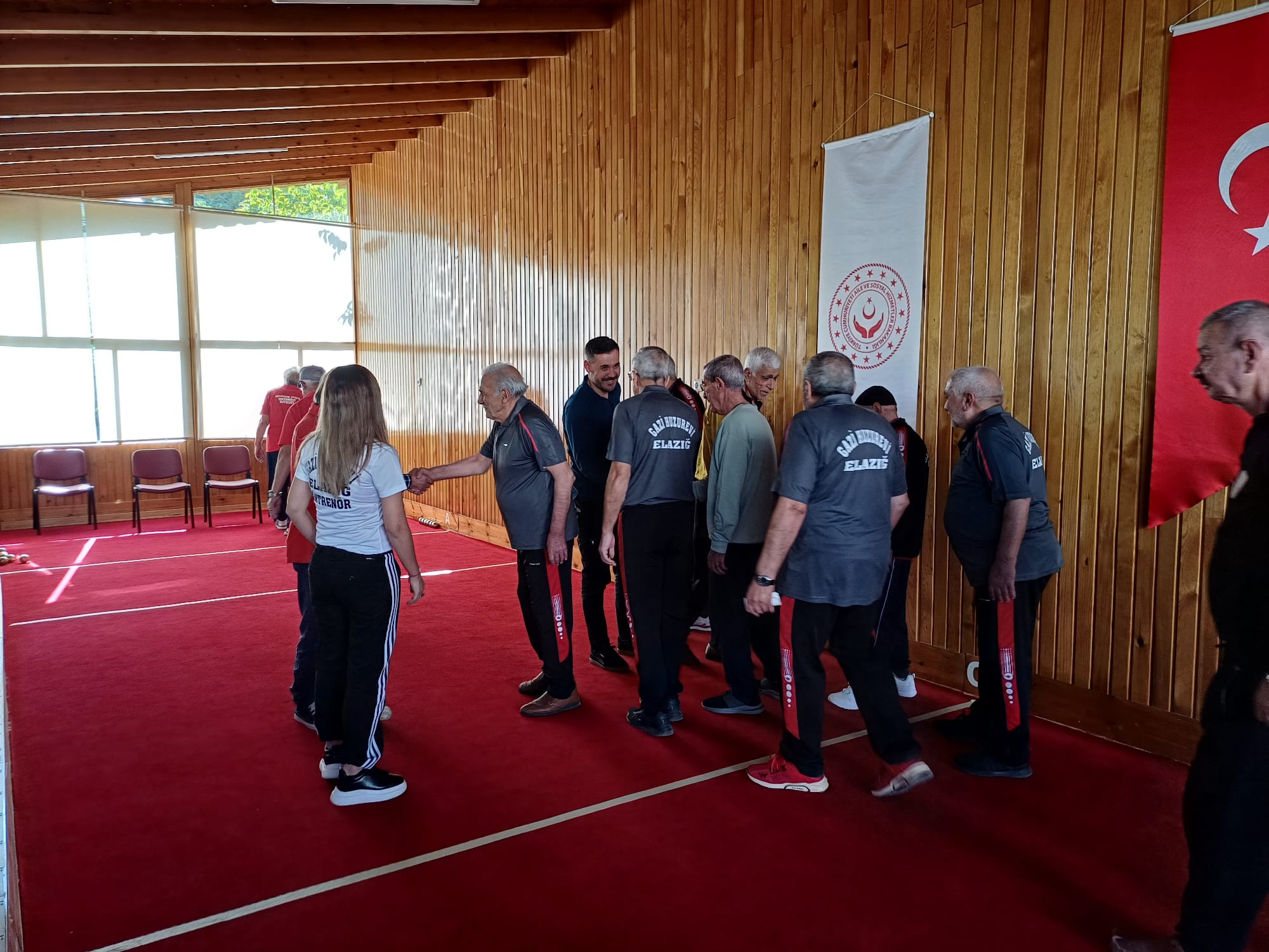 Bocce maçı için Bayburt Memnune Evşen Huzurevi Yaşlı Bakım ve Rehabilitasyon Merkezi'nde bakım altında bulunan kıymetli sakinlerini ve personelini Gazi Huzurevi Yaşlı Bakım ve Rehabilitasyon Merkezimizde ağırladık.