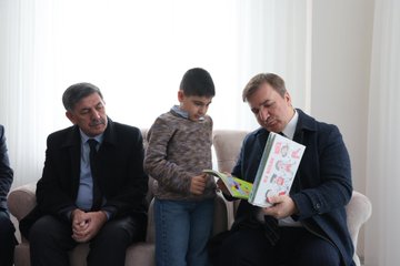 İlköğretim birinci sınıf öğrencisi minik Muhammed Ensar’ı aldığı ilk karne nedeniyle tebrik eden Sayın Valimiz, Bakanımız Sayın Mahinur Özdemir Göktaş’ın aziz şehidimiz Eren Öztürk’ün bizlere emaneti olan kıymetli evladı Muhammed Ensar Öztürk’e hitaben göndermiş oldukları mektup ve hediyeyi takdim etti.