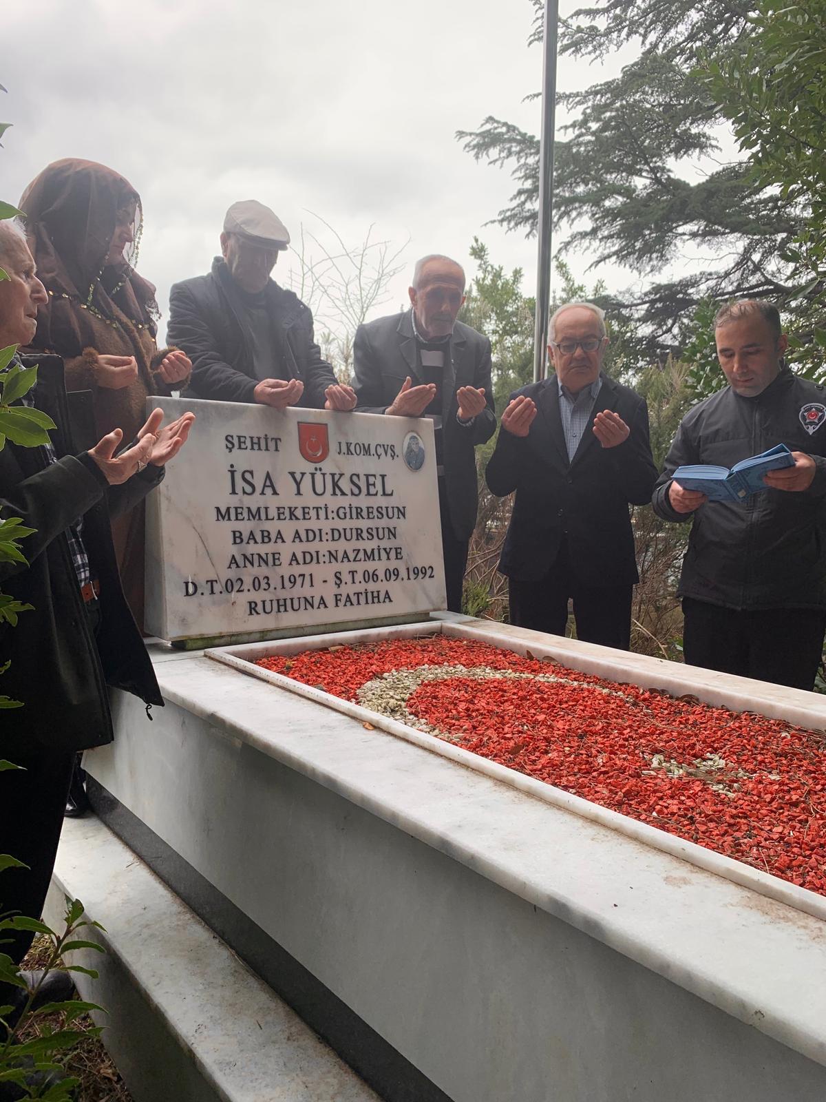 Çanakkale Zaferi ve Şehitleri Anma Günü vesilesiyle, Giresun Delikli Taş Mezarlığı’nda bulunan Şehit J. Kom. Çvş. İsa YÜKSEL’in kabri ziyaret edilerek dualar edildi.