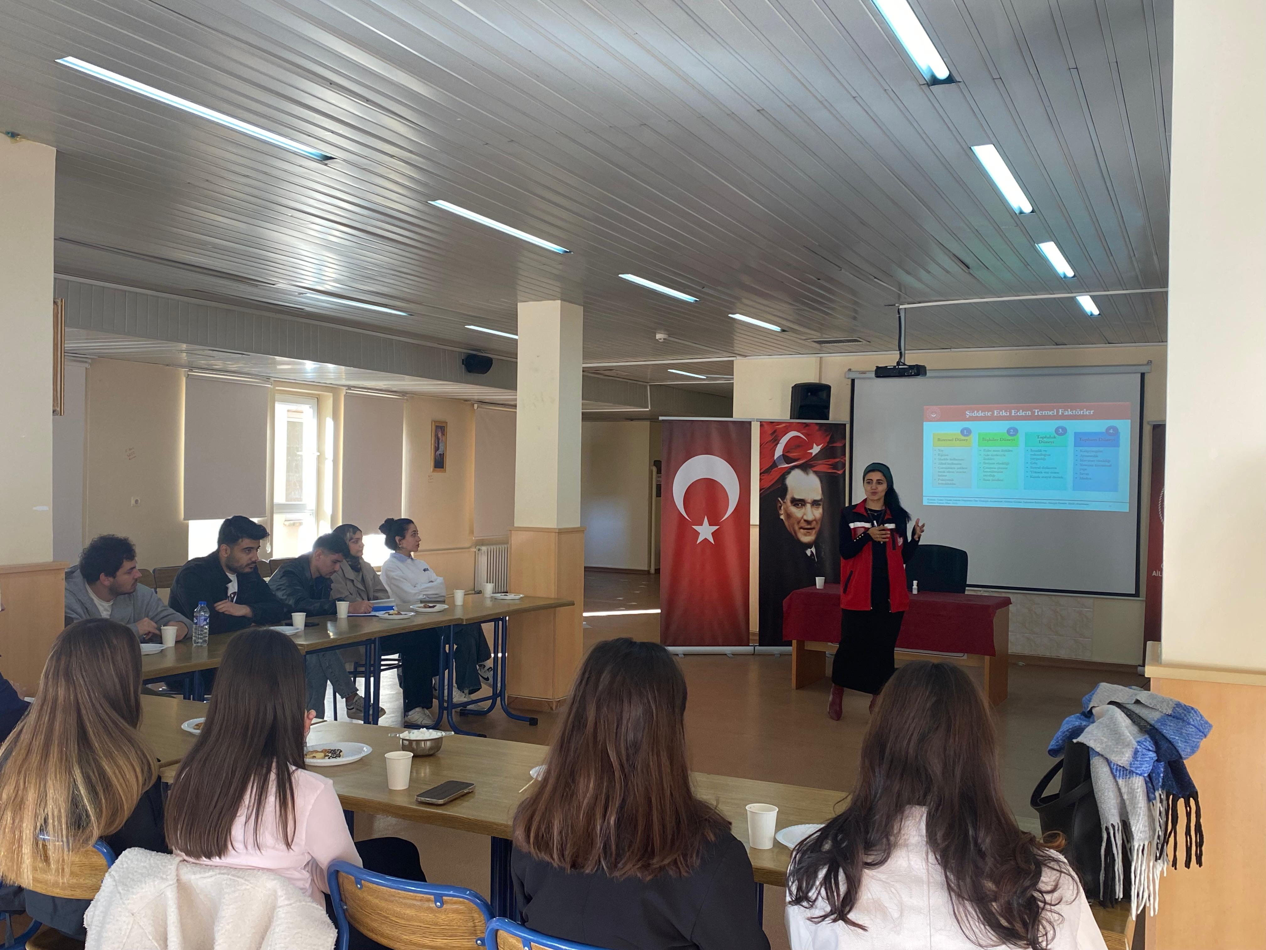 kadına yönelik şiddetin toplumsal dinamikleri, kurumlar arası iş birliği, müdahale süreçleri ve sosyal hizmet mekanizmalarının işleyişine ilişkin kapsamlı bir bilgi ve tecrübe paylaşımında bulundu.