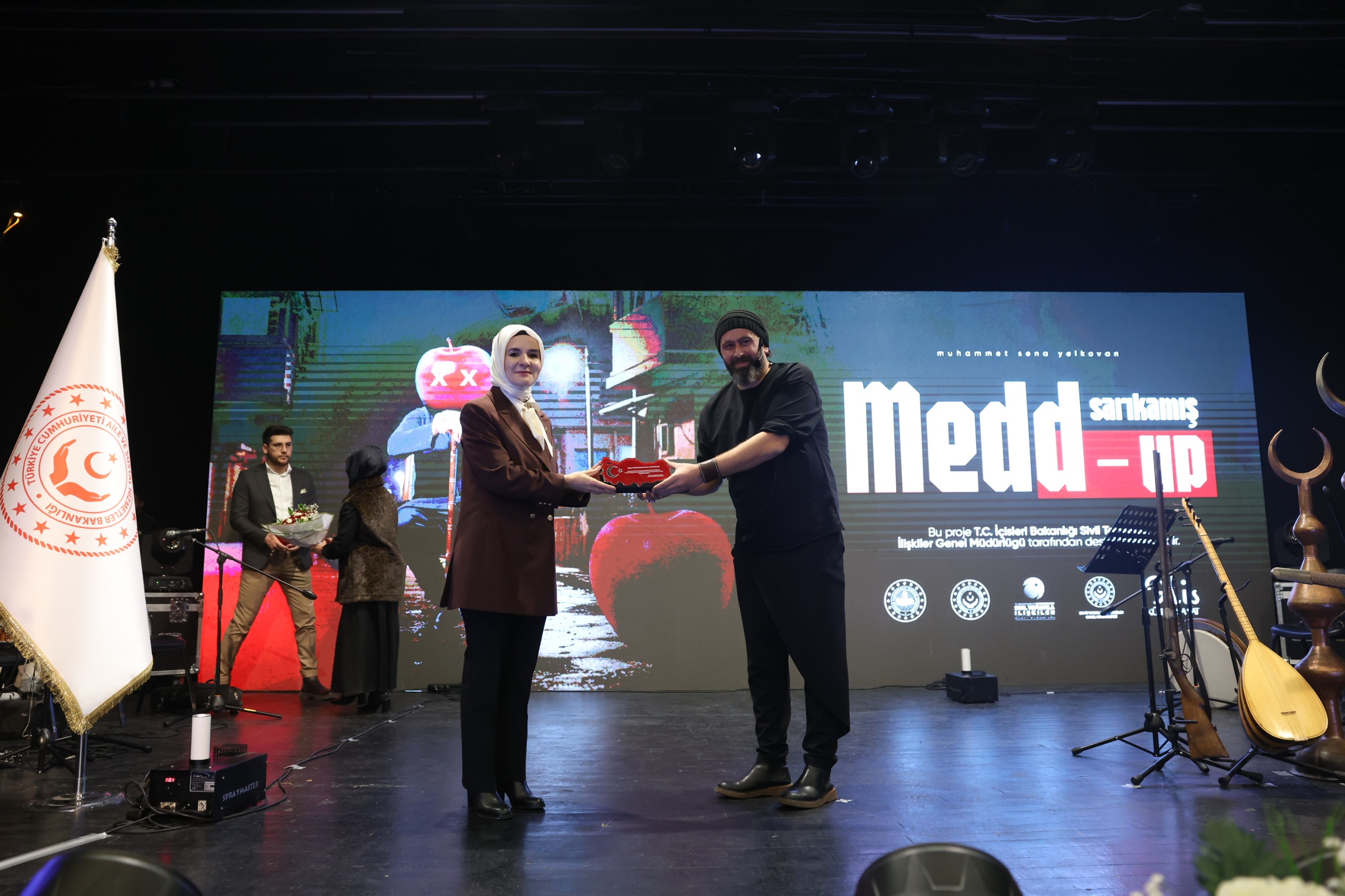 Konuşmasının ardından Göktaş, sanatçı Muhammet Sena Yelkovan'a hediye verdi. Yelkovan da gösterinin ardından Bakan Göktaş'a hediye takdiminde bulundu.