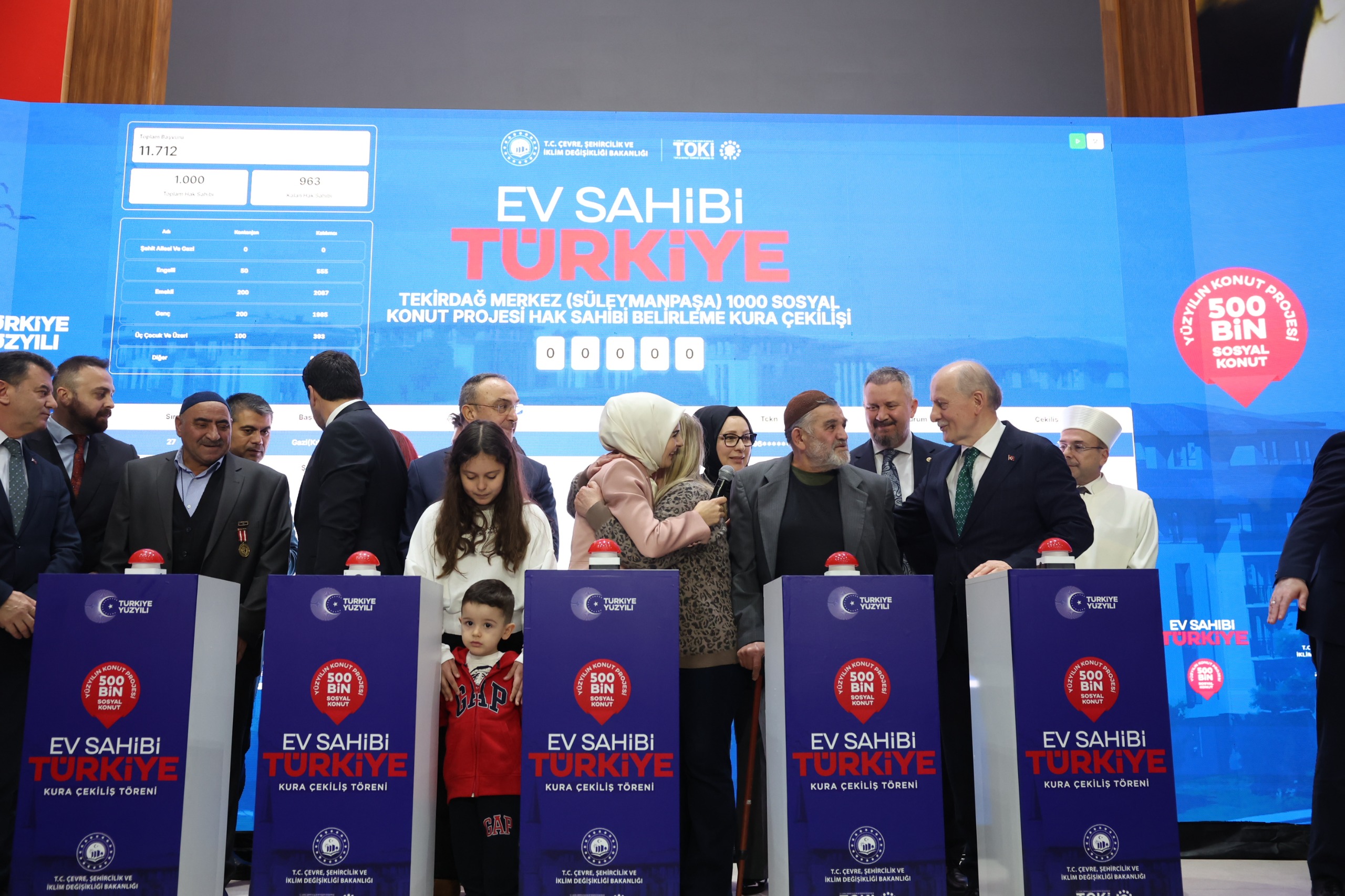 "Bugün Tekirdağ'ımızda 6 bin 865 konutun hak sahiplerini belirleyeceğiz. Yüzyılın Konut Projesi engelli vatandaşlarımız ve şehit yakınlarımız için ayrılan özel kontenjanla hiç kimseyi geride bırakmayan yaklaşımın bir yansımasıdır. Çünkü konut, sadece bir bina değildir. Şehirlerin nitelikli yaşam alanlarına kavuşması, mahallenin huzuru, ailenin birliğidir. Bu anlamda hayata geçirilen her bir sosyal konut projesi 'aile dostu ekosistem' anlayışımızın kıymetli bir parçasıdır."