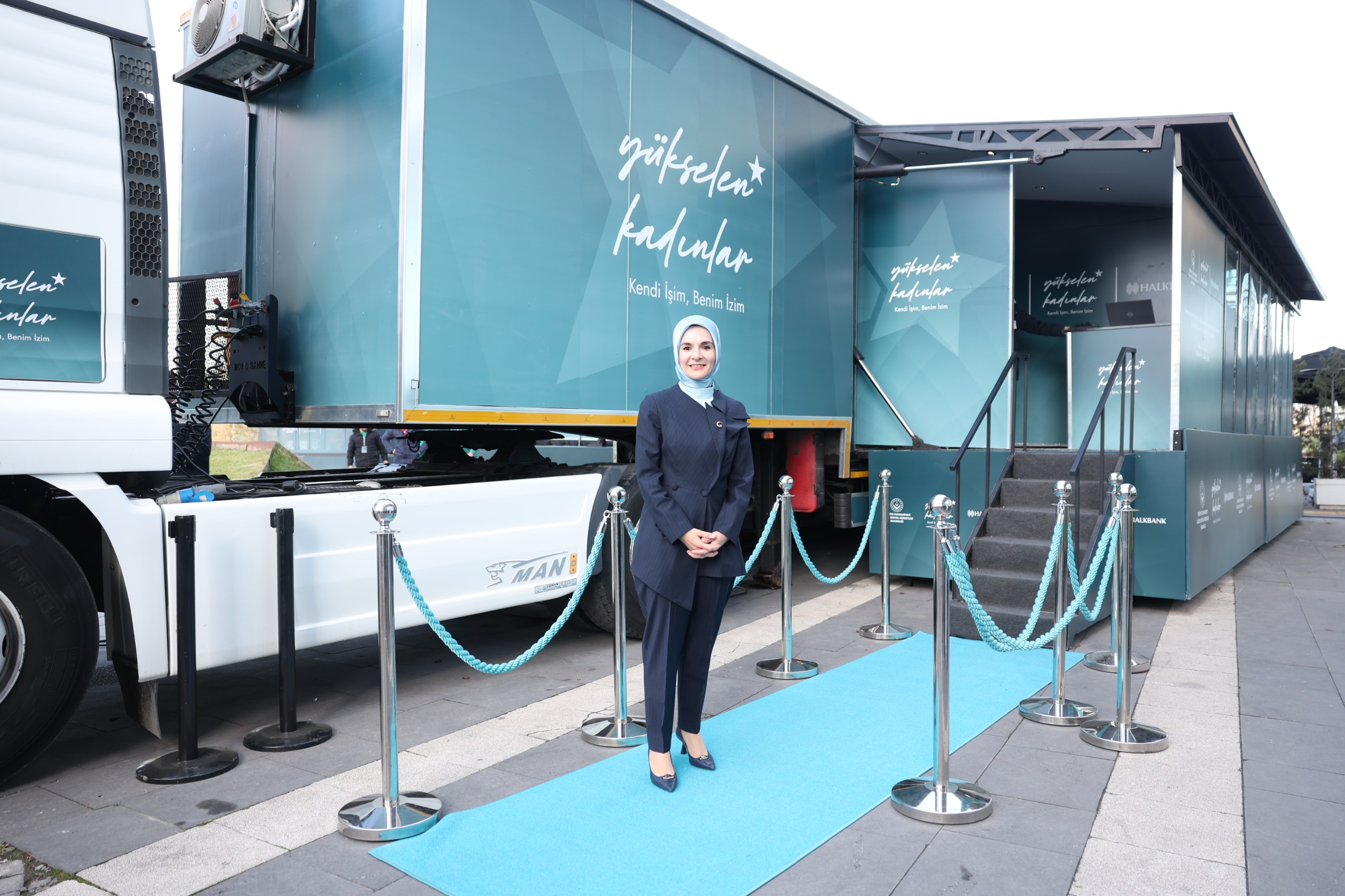 Törenin ardından Bakan Göktaş, eğitim tırının direksiyonunun başına geçti. Bu sembolik başlangıcın ardından Bakan Göktaş ve Halkbank Genel Müdürü Arslan kadınlara destek verecek olan tırı bakanlık bahçesinden Karadeniz'e uğurladı.