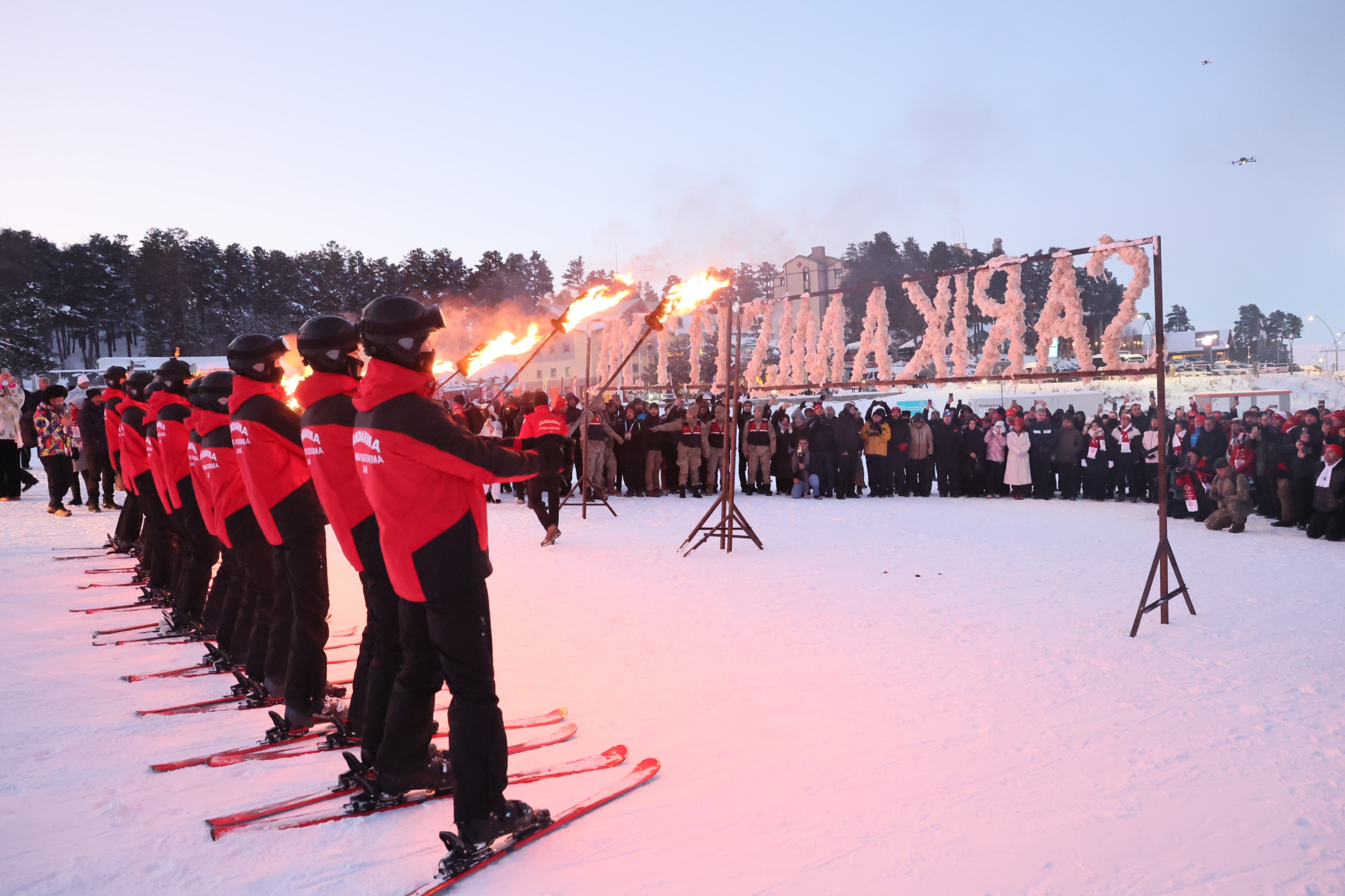 Sarıkamış Kayak Merkezi'nde düzenlenen etkinlikte, Çanakkale'deki 57. Alaya ithafen Sarıkamış'ta konuşlanan 57. Komando Taburu'nda görevli komandolar ve JAK timleri, ellerinde Türk bayrakları ve Atatürk posterleri taşıyarak meşalelerle zirveden indi.