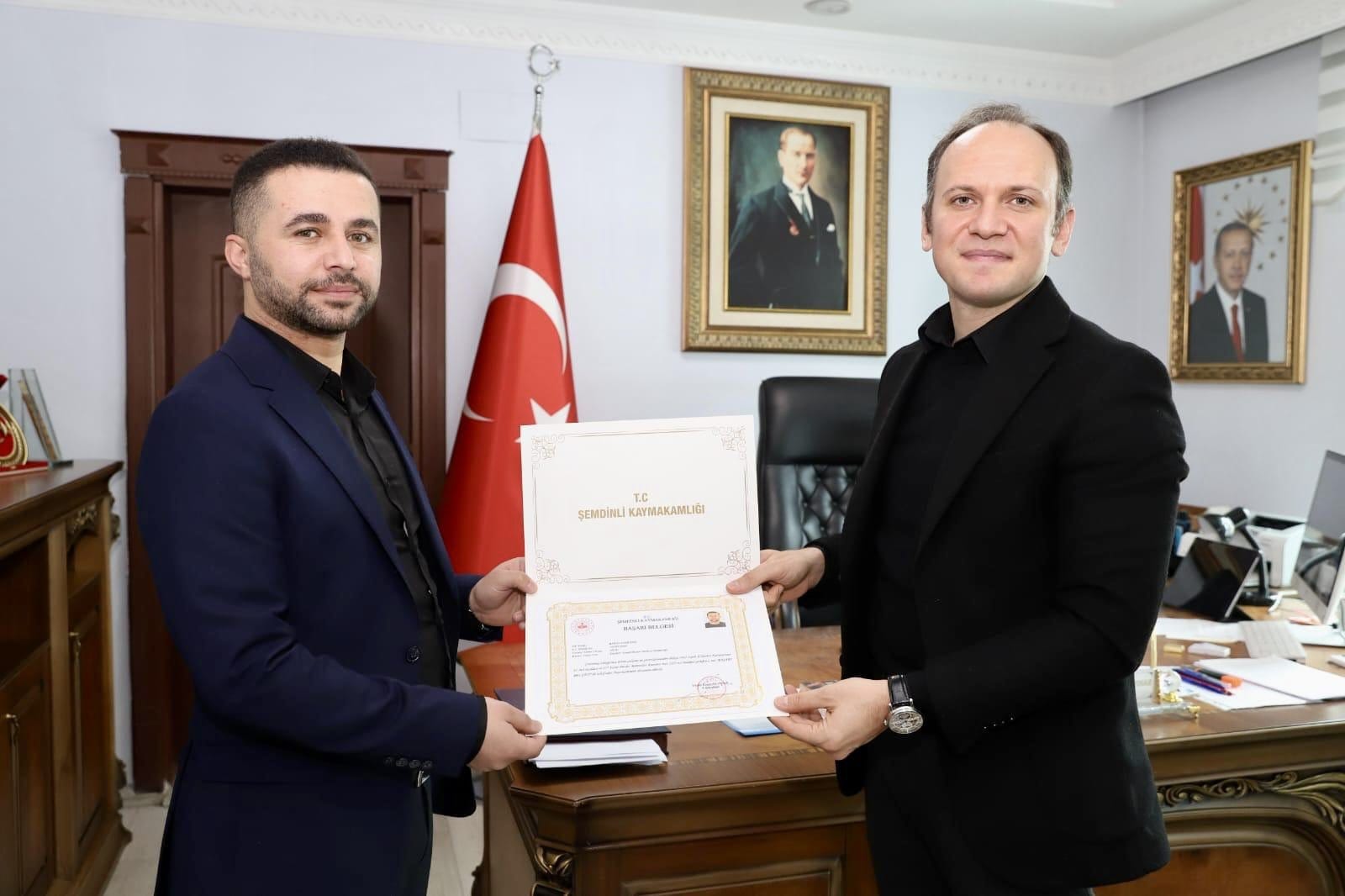 Kaymakam Akpınar, vatandaşlara zamanında ve etkin şekilde hizmet sunulmasında gösterilen gayretlerden dolayı personele başarı belgesi takdim ederek teşekkür etti.