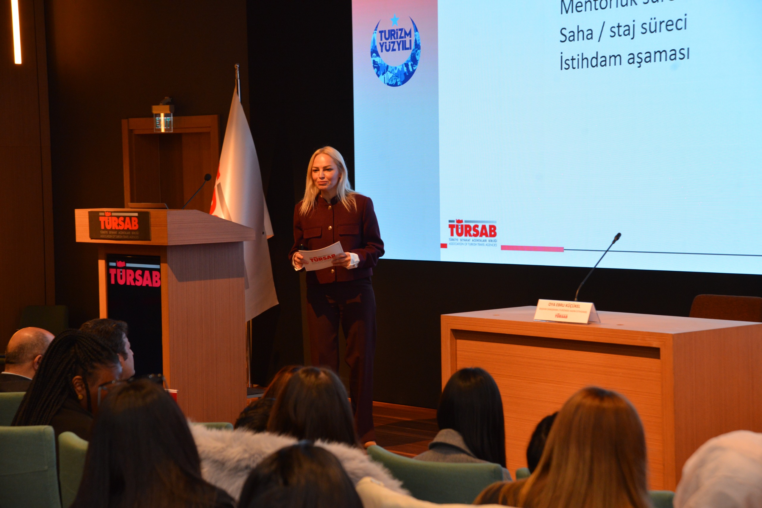 Bakanlığımız ile Türkiye Seyahat Acentaları Birliği (TÜRSAB) arasında imzalanan iş birliği protokolü çerçevesinde hayata geçirilen “Kadın Gücüyle Yükselen Turizm” eğitim programı projesi, kursiyer adaylarının katılımıyla düzenlenen tanışma ve oryantasyon toplantısı ile başladı. Turizm sektöründe kadın iş gücünün nitelikli bir şekilde artırılmasını ve sektörel kalkınmada kadın emeğinin ön plana çıkarılmasını hedefleyen projenin ilk buluşması gerçekleştirildi.