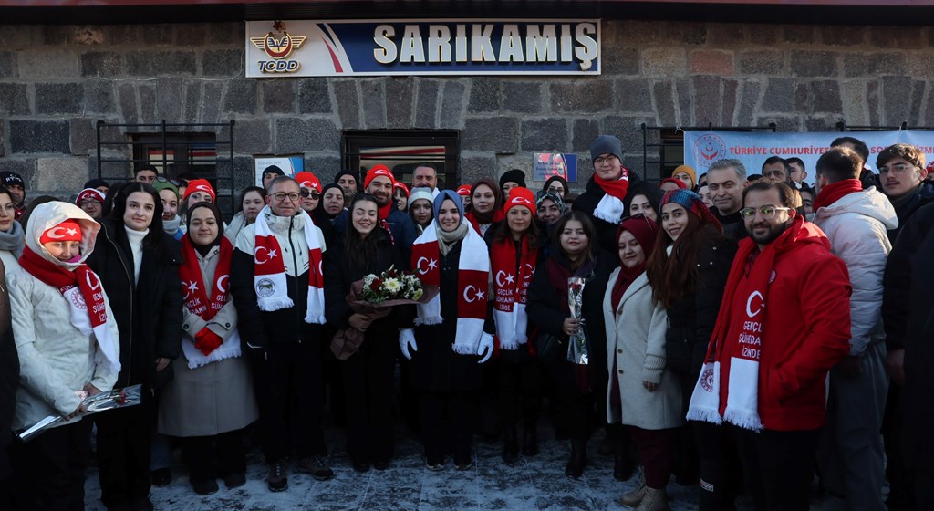 Bakan Göktaş ardından Sarıkamış Şehitleri'ni anma etkinlikleri için Ankara'dan Kars'a "Sarıkamış Ekspresi" ile gelen gençleri karşıladı.