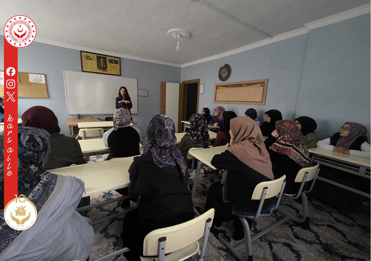 Kağızman Sosyal Hizmet Merkezi Müdürlüğü tarafından, Hacı Atalay - Miyase Çelik Yatılı Kız Kur'an Kursu kursiyerlerine yönelik “Aile İçi ve Kadına Yönelik Şiddetle Mücadele” ile “Erken Yaşta ve Zorla Evliliklerle Mücadele” konularında bilgilendirme çalışması gerçekleştirildi.