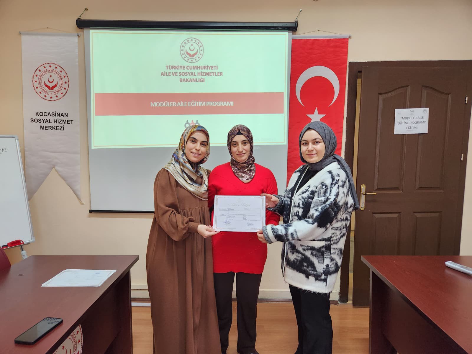 İl Müdürlüğümüze bağlı Kocasinan Sosyal Hizmet Merkezi Müdürlüğünde, Modüler Aile Eğitim Programı kapsamındaki ikinci grup eğitimleri başarıyla tamamlandı. 9 hafta boyunca süren programa katılan, katılımcılara katılım belgesi takdim edildi