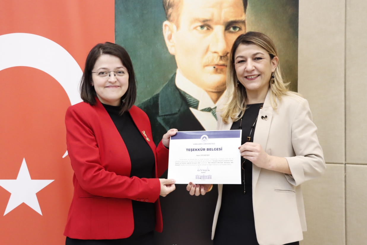 Programa; Kırklareli Aile v e Sosyal Hizmetler İl Müdür Yardımcısı Remziye Algın, Rektör Yardımcısı Prof. Dr. Eylem Özkaya Lassalle, Prof. Dr. Murat Gençbay ve Sağlık Bilimleri Fakültesi Dekan Yardımcısı Doç. Dr. Yeliz Mercan katılım sağladı.