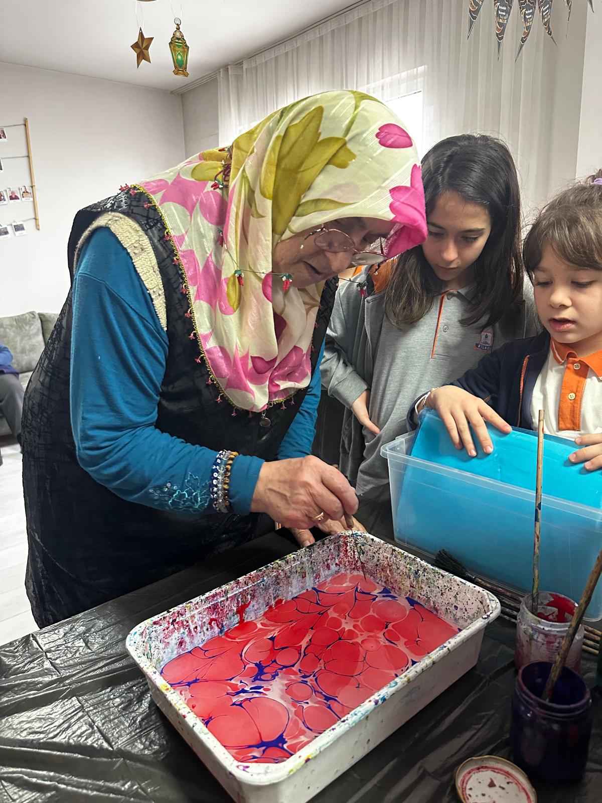 Bilnet Okulları’nın değerli öğrencileri ve kıymetli öğretmenleri huzurevimizi ziyaret ederek büyüklerimizle bir araya geldi. Ziyarette hep birlikte söylenen şarkılarla neşeli anlar yaşanırken, gerçekleştirilen Ebru Sanatı çalışmasıyla da renkli ve anlamlı eserler ortaya çıktı.