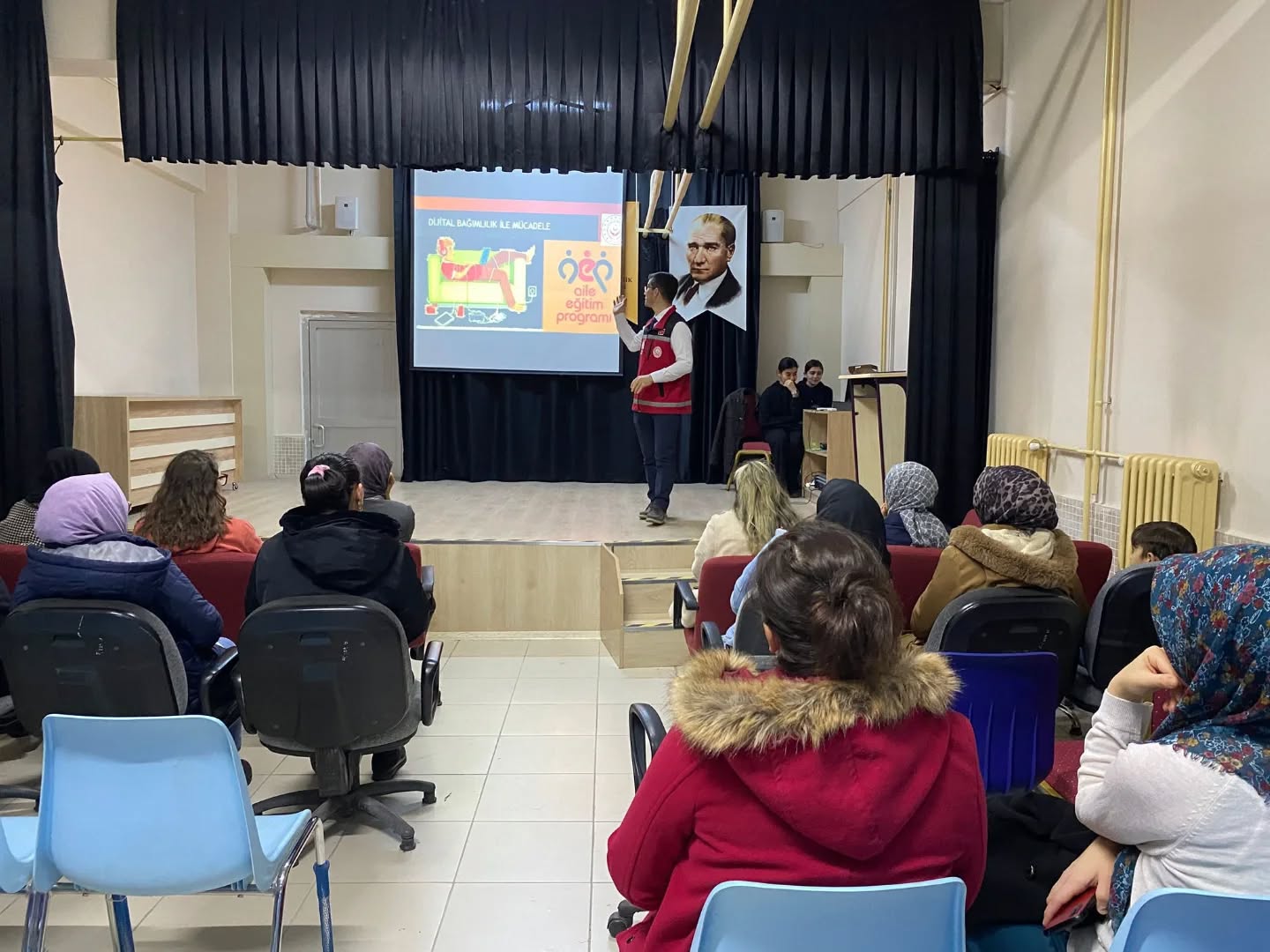 Eğitim kapsamında velilerimize dijital bağımlılığın belirtileri, güvenli internet kullanımı ve çocuklarla sağlıklı dijital iletişim kurma yöntemleri hakkında önemli bilgiler aktarıldı.