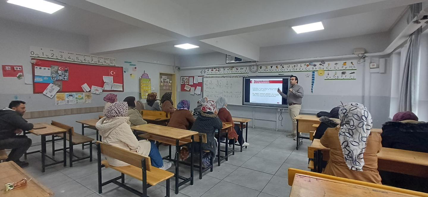 AEP Eğiticisi Psikolojik Danışman Oktay MAHMUTOĞLU tarafından gerçekleştirilen eğitimlerde, Aile Eğitim Programı kapsamında “Çocuk Yetiştirmede Güncel Konular” ve “Bilinçli Medya Kullanımı” başlıkları ele alındı.