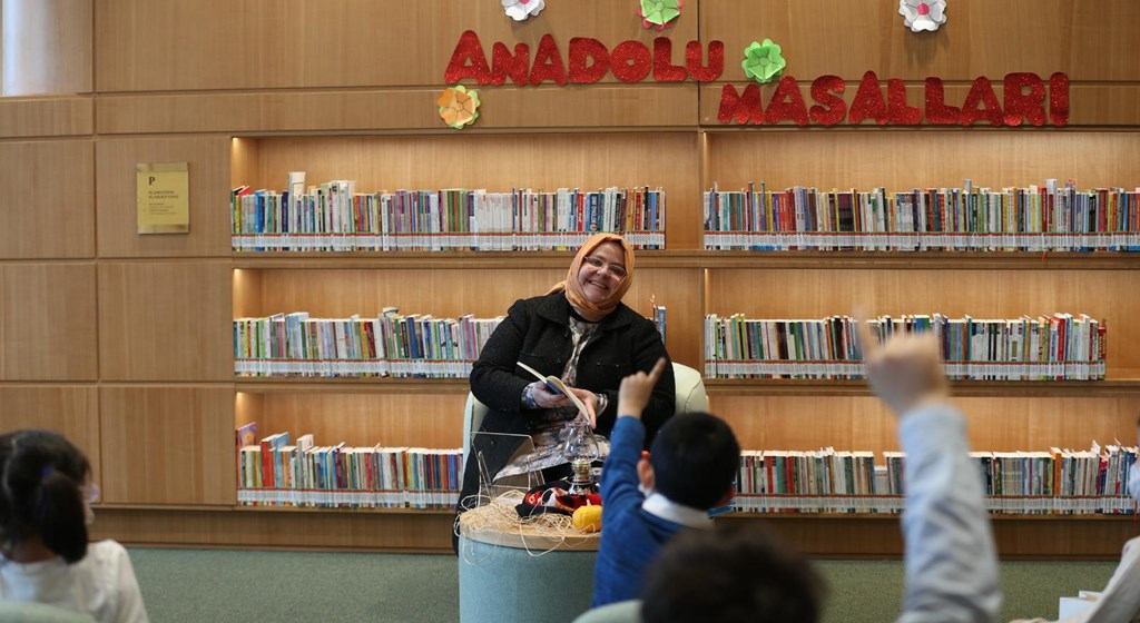 Cahit Zarifoğlu’nun Serçe Kuşu kitabından bir hikâyeyi okuyan Bakan Selçuk, çocuklara hikâye ile ilgili sorular da sordu.