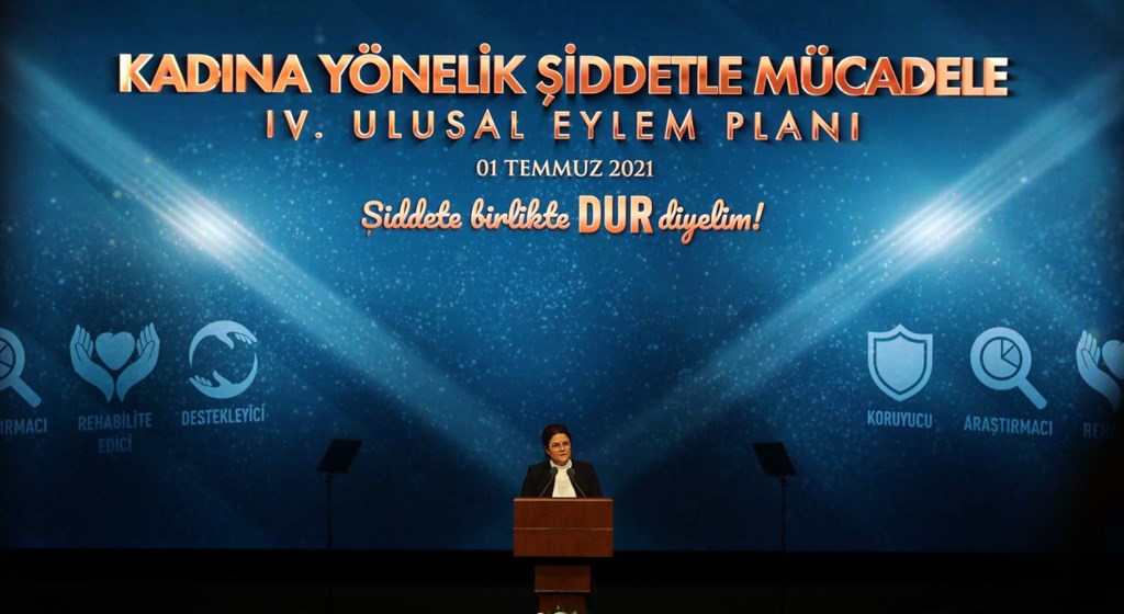 Değişen şartlar ve ortaya çıkan ihtiyaçlar çerçevesinde gereken her türlü yasal ve idari tedbirleri almayı sürdüreceklerine dikkati çeken Erdoğan, "Kadına Yönelik Şiddetle Mücadele 4. Ulusal Eylem Planı'nın ilk hedefini şiddetle mücadele mevzuatının gözden geçirilmesi ve etkin uygulanması olarak belirledik. Amacımız adli süreçte, mağdurun adalete erişiminin kolaylaşmasını, mağdurun haklarını etkin kullanmasını ve şiddet eylemlerinin orantılı şekilde cezalandırılmasını sağlamaktır." değerlendirmesinde bulundu.