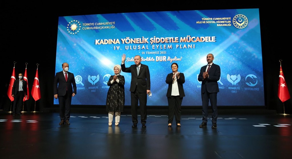Kadına Yönelik Şiddetle Mücadele 4. Ulusal Eylem Planı'nın 2021-2025 yıllarını kapsadığını bildiren Erdoğan, "Bu çalışma için hazırlıklarımızı 2020 yılı başından beri sürdürüyoruz. Eylem planımızı, kamu kurumlarının, sivil toplum kuruluşlarının, üniversitelerin, medya mensuplarının, uluslararası kuruluş temsilcilerinin ve ilgili tüm paydaşların katkılarıyla hazırladık. Oldukça hacimli bir kitap olarak ortaya çıkan planı, 5 ana hedef, 28 strateji ve 227 faaliyet şeklinde yapılandırdık. Önümüzdeki 5 yıl boyunca kadına yönelik şiddetle mücadelede takip edeceğimiz ana başlıkların hepsi bu planda yer alıyor” şeklinde konuştu.