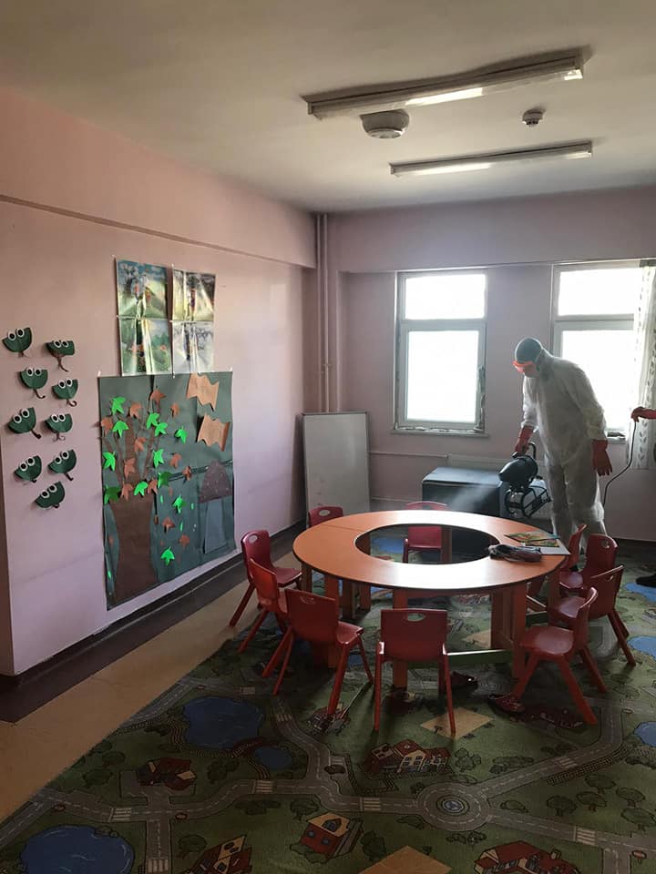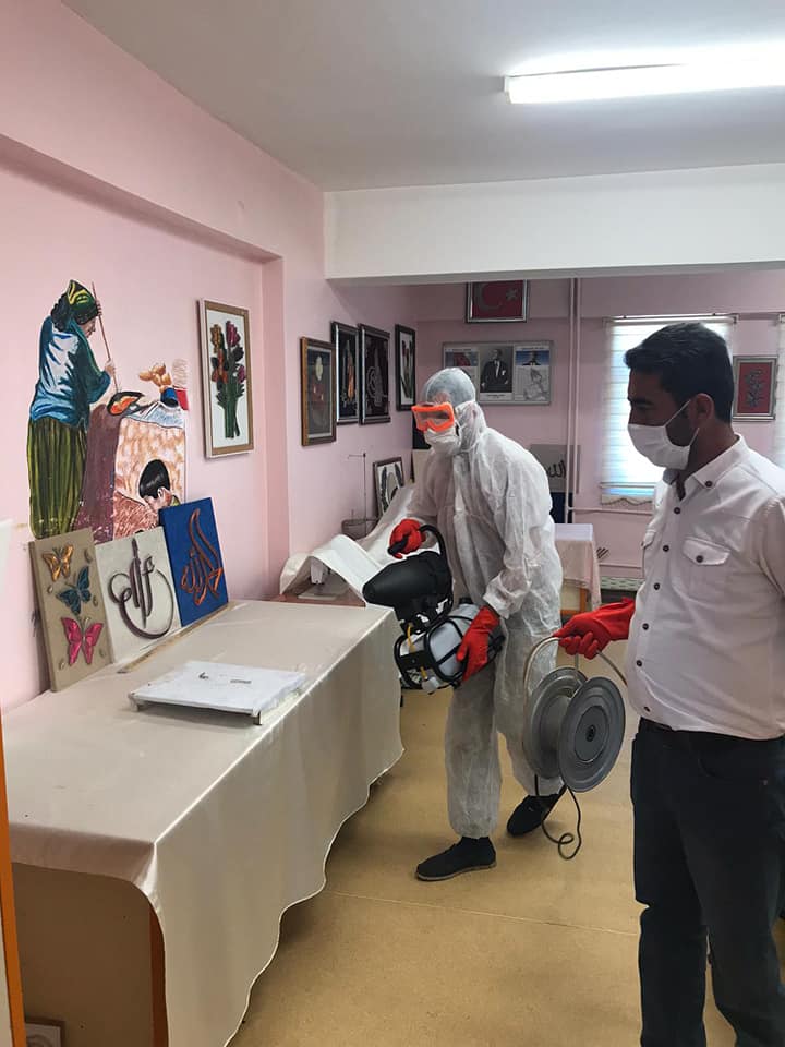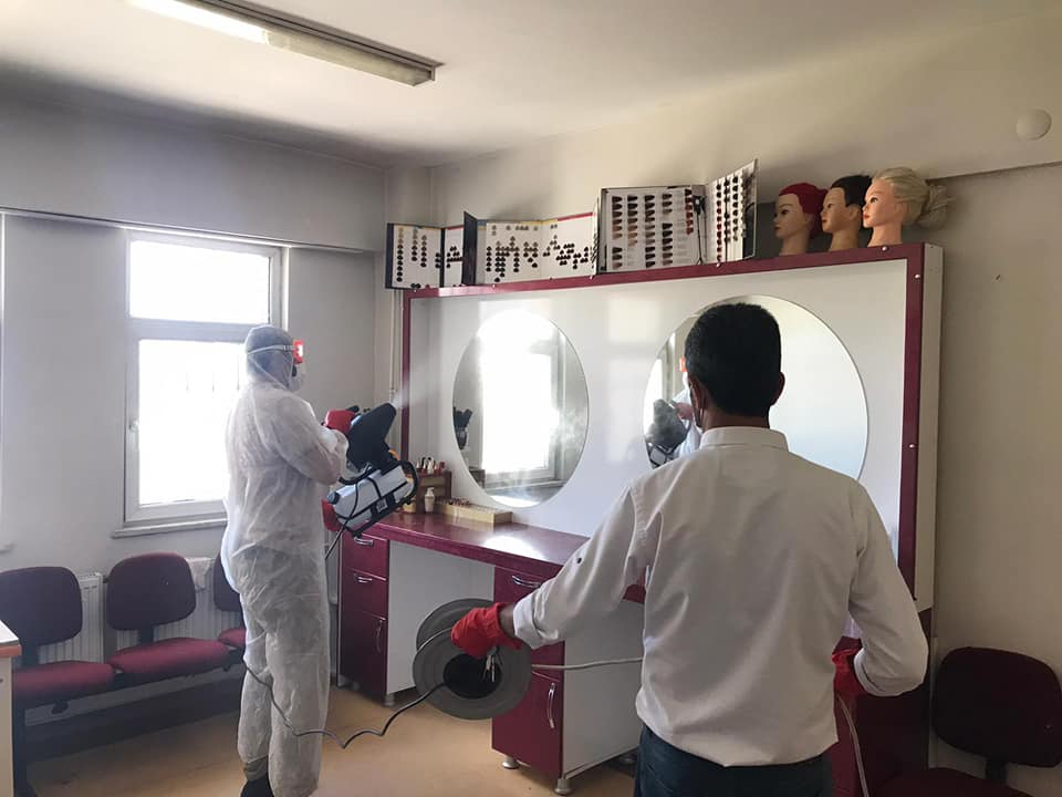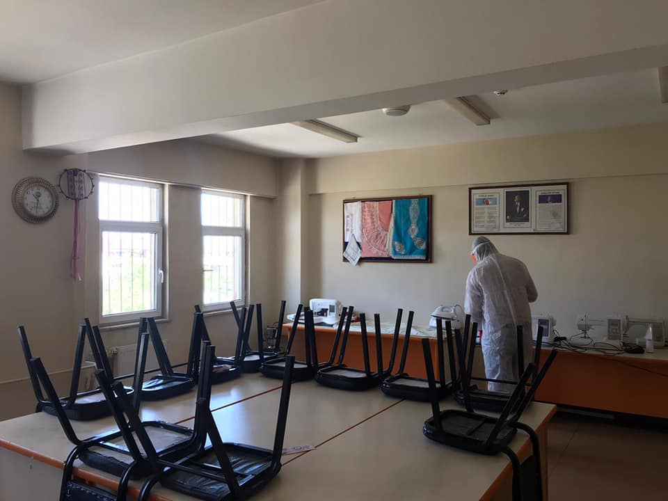 Müdürlüğümüz ek hizmet binasında kadınlara yönelik düzenlediğimiz ancak Covid-19 virüsü nün ülkemizde tespit edilmesi sonrası alınan tedbirler dolayısıyla ara verdiğimiz kursların yakın zamanda başlayacak olması sebebiyle ve kursiyerlerin sağlıklı ortamda eğitim almasını sağlamak amacıyla ek hizmet binamızda dezenfekte işlemleri gerçekleştirilmiştir.
