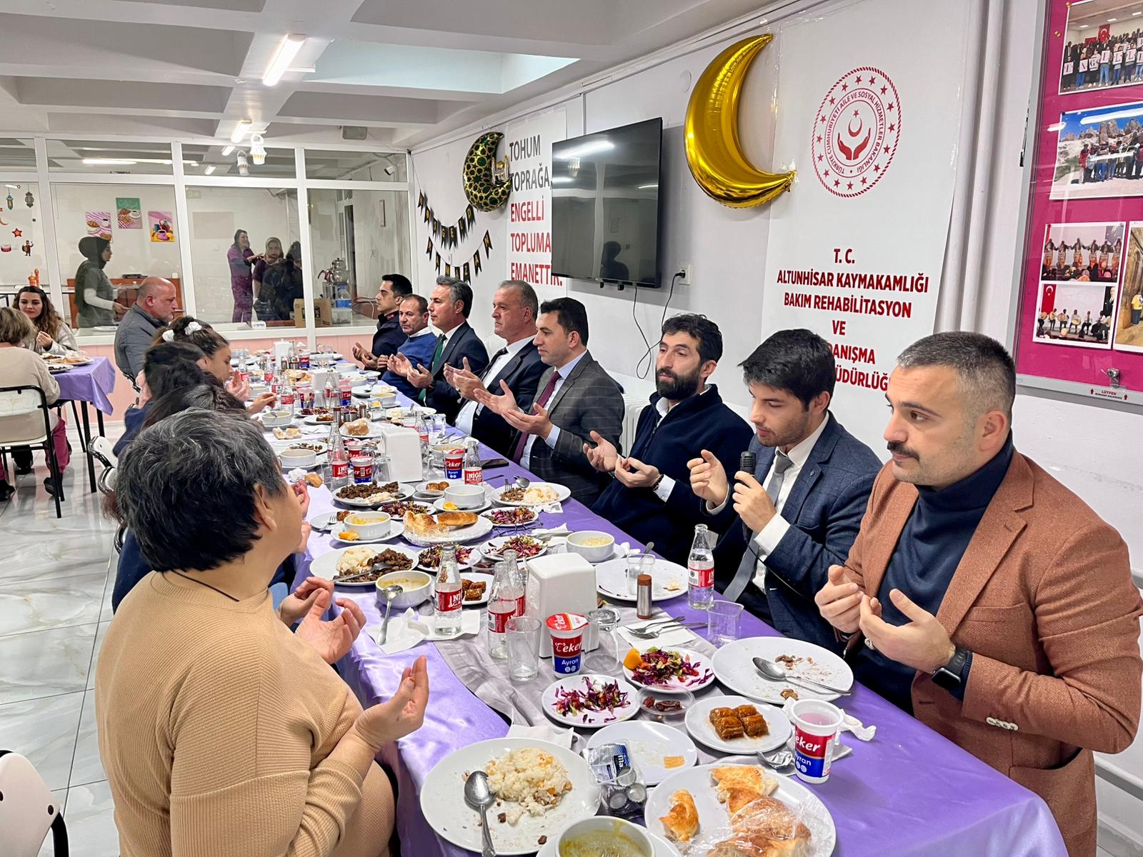 Bugün iftar sofrasında özel bireylerimizle bir araya geldik. İftar programına Altunhisar Belediye Başkanı Sayın Neşet Doygun, İl Müdürümüz Sayın Nurettin Kesler,İl Müdür Yardımcımız Selçuk Hüseyin Demirtaş ve ilçe protokolü katılım sağladılar.