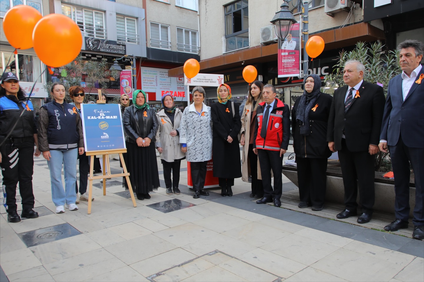 25 Kasım Kadına Yönelik Şiddete Karşı Uluslararası Mücadele Günü kapsamında, Fatsa Kaymakamlığı himayesinde; Fatsa Sosyal Hizmet Merkezi Müdürlüğü koordinasyonunda, Fatsa Belediyesi, Fatsa İlçe Emniyet Müdürlüğü ve Fatsa İlçe Jandarma Komutanlığı iş birliğiyle Plevne Meydanı’nda farkındalık etkinliği düzenlendi.