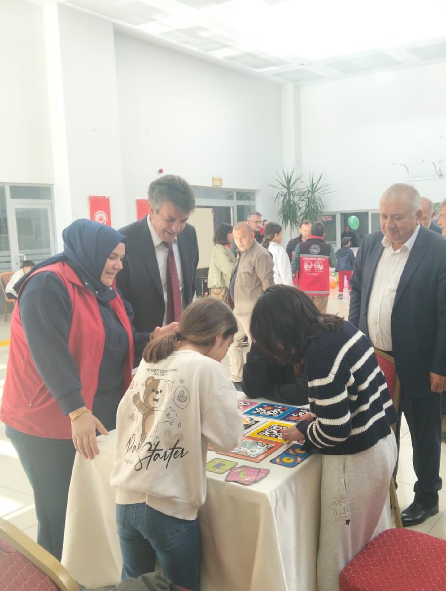 Protokol üyeleri, atölye masalarını tek tek gezerek çocuklarla yakından ilgilendi ve onlarla sohbet etti. Program sonunda çocuklara çeşitli hediyeler takdim edilerek sevinçleri paylaşıldı.