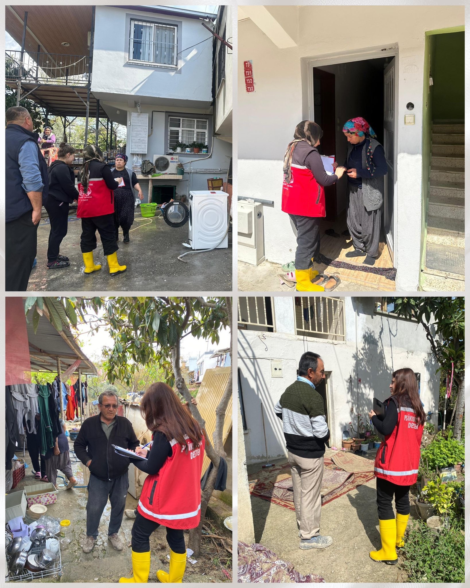 Kadirli ilçemizde yaşanan sel felaketi sonrasında, Kadirli Sosyal Hizmet Merkezi personellerimiz tarafından afet sonrası psikososyal destek hizmeti sunulmaya devam etmektedir. Vatandaşlarımızın yaşadığı zor süreci en sağlıklı şekilde atlatabilmeleri amacıyla sahada aktif olarak çalışmalarımız sürdürülmektedir.